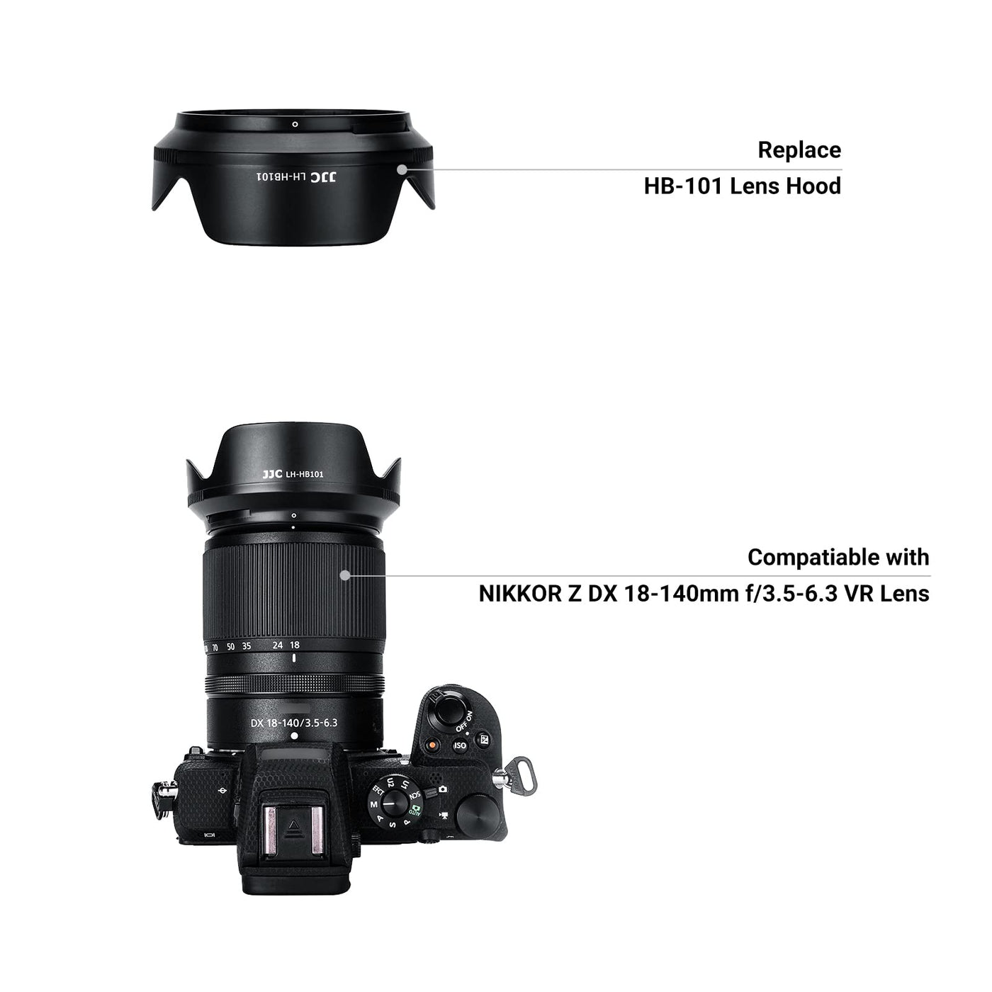 Camera Lens Hood For Nikon Nikkor Z Dx 18-140Mm F/3.5-6.3 Vr Lens Replace Nikon Hb-101 *****Replace Nikon Hb-101***** Specifications: Lens Hood Is One Of The Most Important Accessories For Each Lens You Own. Whether You Are A Professional Photographer Or Love Photography, You Need A Lens Hood, Because It Will Reduce The Effect Of Stray Light On Image Quality, Improve The Clarity Of The Picture, And Preserve The Original Color Of The Picture. Not Only Provides Extra Protection For Your Lens, But Also Reversing On The Lens, Reducing The Space For Backpacks Traveling. Made Of High-Quality Abs Material, Lightweight And Durable, Easy To Install, Directly Connect The Hood To The Lens Through The Thread. Applicable Lens: Compatible With Nikon Nikkor Z Dx 18-140Mm F/3.5-6.3 Vr Package Included: Lens Hood X 1 Micro Fiber Cleaning Cloth X 1
