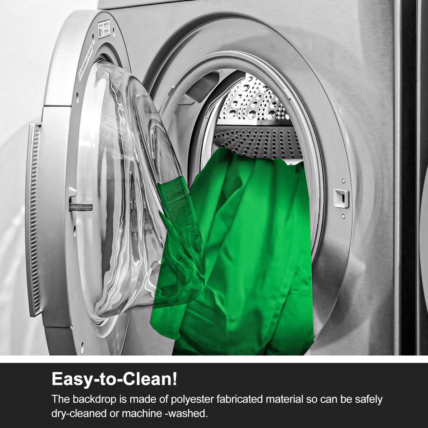 Q: How can I remove wrinkles from the backdrop?A: You can easily remove wrinkles from the backdrop using a simple steam iron, running it in a dryer with ice cubes, or by machine washing and drying it in a straight position.