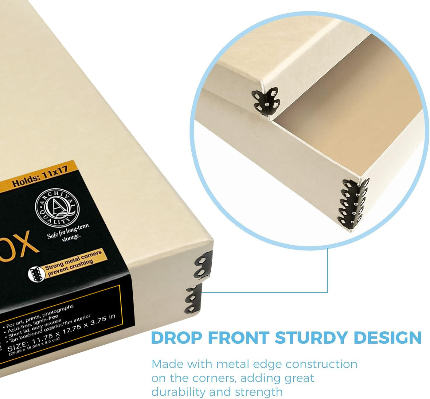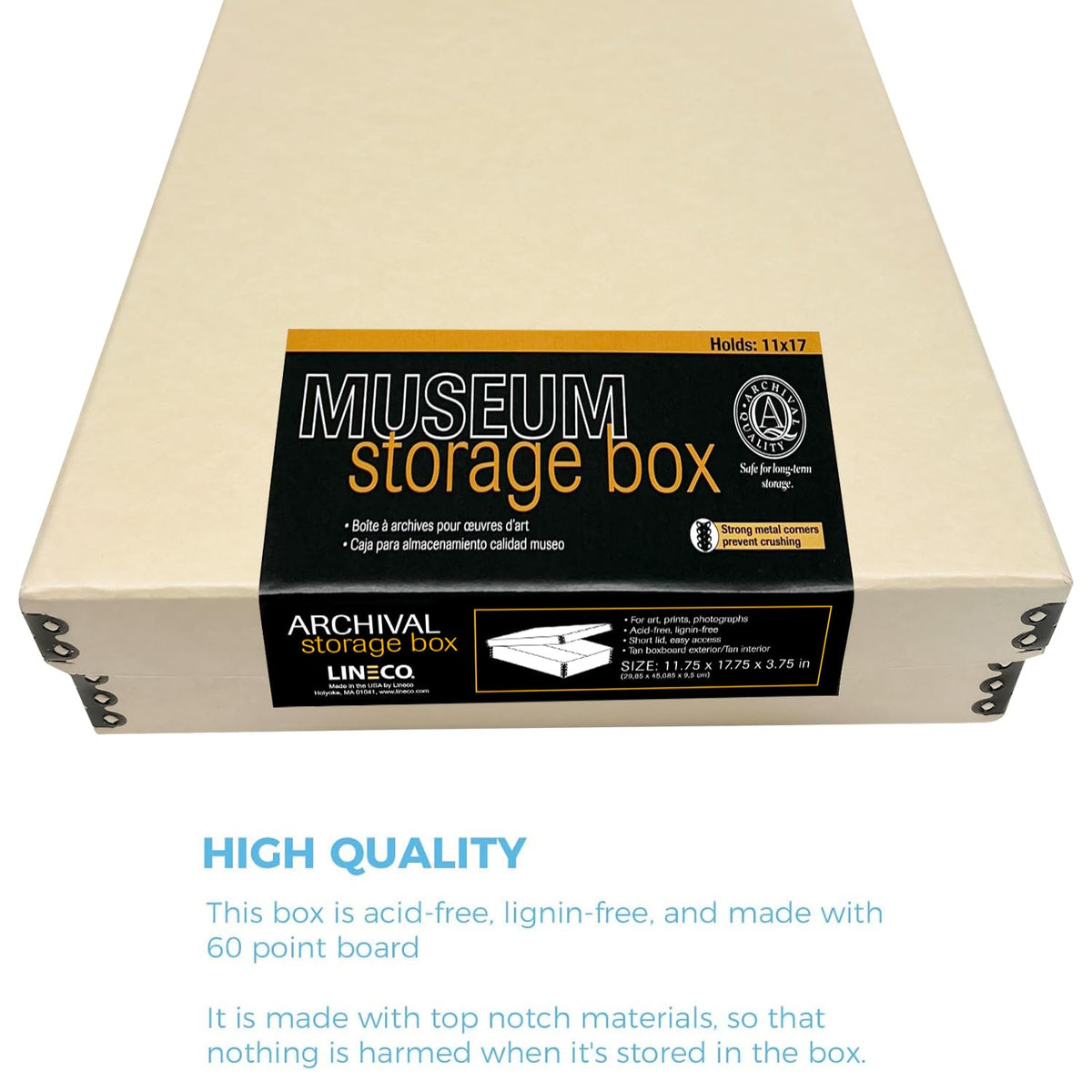 Lineco, 11X17 Tan Museum Archival Storage Box, Acid Free With Metal Edge. Preserves Picture Longevity, Organize Photos Or Docume