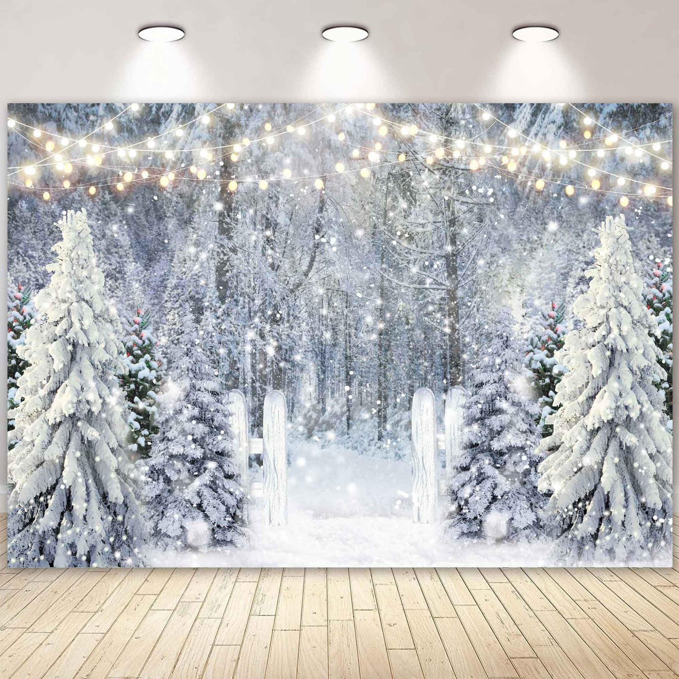 Livucee 10X8Ft Polyester Fabric Winter White Snowy Forest Backdrop For Photography Christmas Glitter Wonderland Nature Xmas Tree