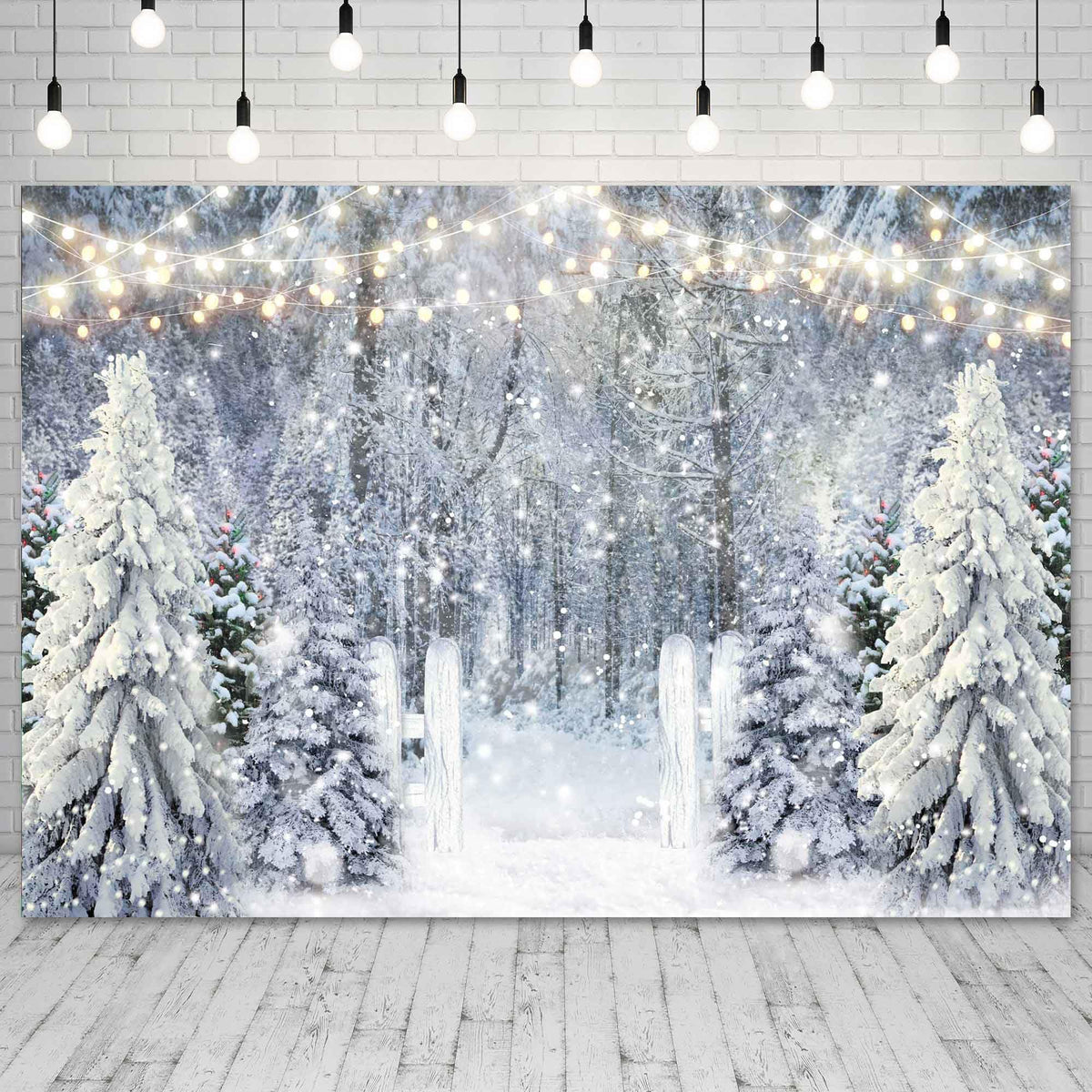 Livucee 7X5Ft Polyester Fabric Winter White Snowy Forest Backdrop For Photography Christmas Glitter Wonderland Nature Xmas Trees