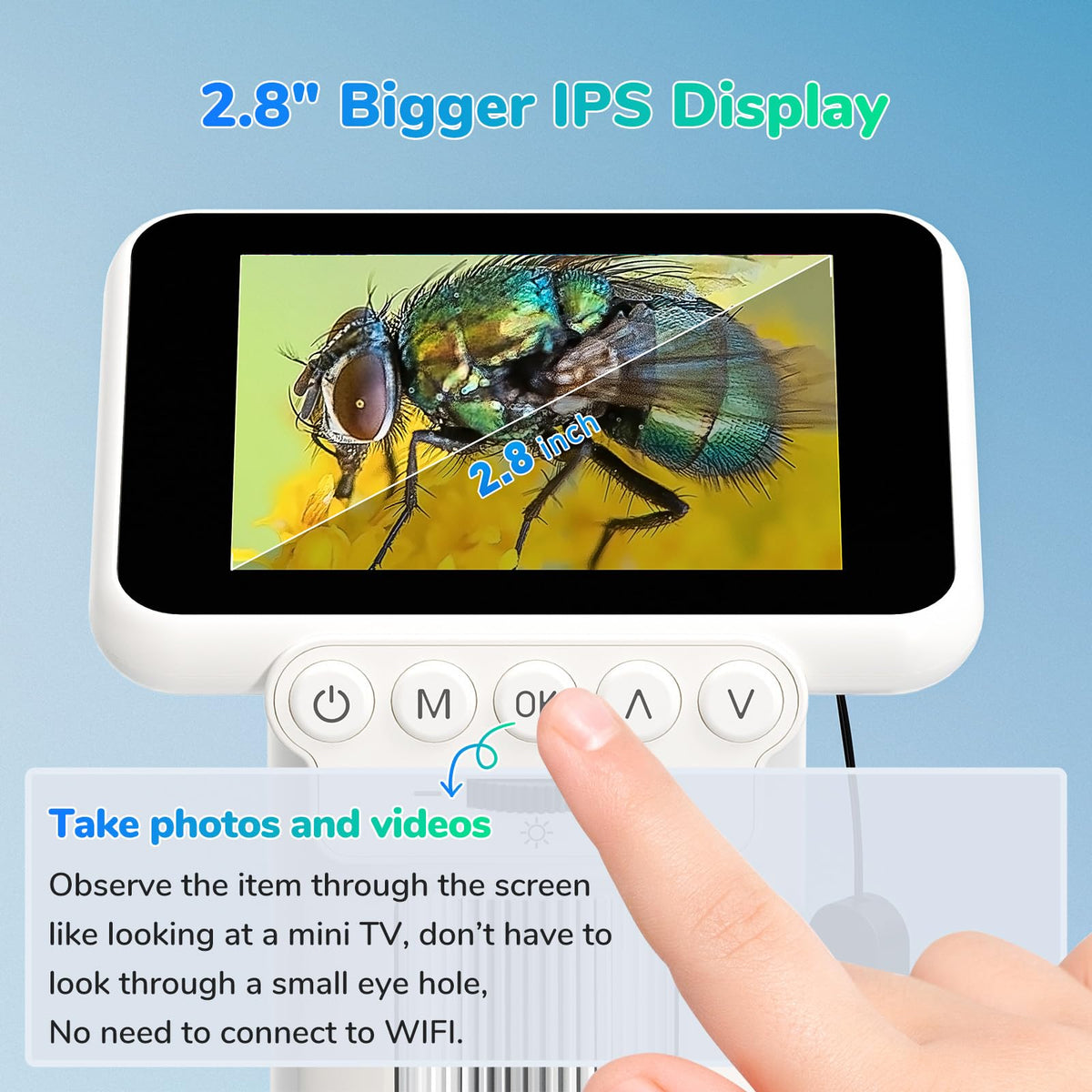 Lm013 Microscope For Kids Adults, Portable Microscope Science Kit For Kids 8 12, Handheld Pocket Mini Kids Microscope With 2.8''