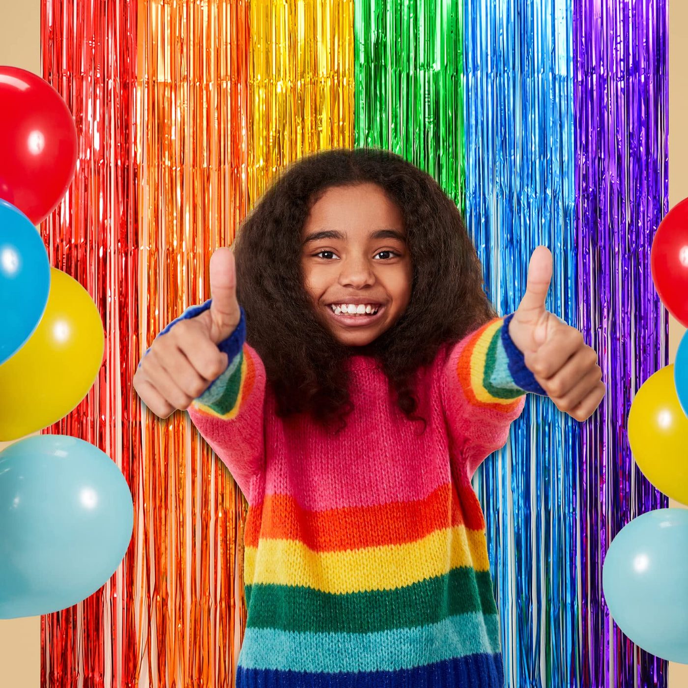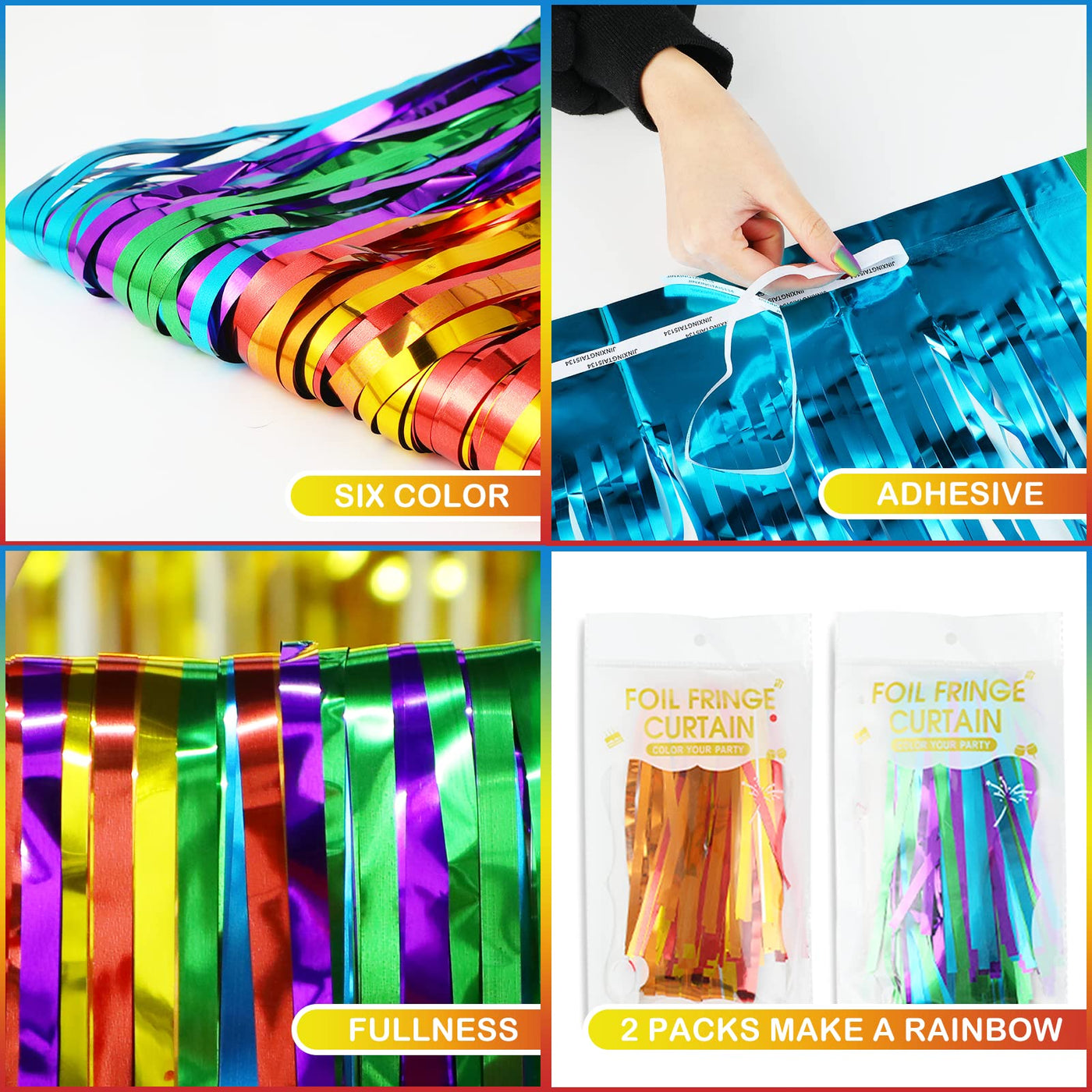 ?? Rainbow Party Decorations: 2 Packs Of Red Orange Yellow, And 2 Packs Of Green Blue Purple Foil Fringe Curtains, Extra Large Size (Width X Drop) 3.3 X 6.6 Ft Each, Perfect For Rainbow Birthday Party Decorations. | ?? High-Quality Fringe Curtains: These Rainbow Metallic Foil Fringe Curtains Are Made Of Tinsel. They Are Lightweight And Durable Fringe Curtains. Our High-Quality Fringe Curtains Are Rugged, Unbreakable, And Can Be Used For A Long Time. | ?? Easy To Apply: Tear Off Double-Sided Adhesive Tape, Then Paste The Fringe Curtain On The Top Of Your Desired Location, Suitable For The Doorway, Window, Wall, Living Room, Dessert Table Backdrop, And Stage Background Decorations. | ?? Rainbow Photo Booth Backdrop: Our Unique Tinsel Foil Fringe Curtains Are The Perfect Photo Backdrop For Every Rainbow Party Decoration And Home Decor. You Will Be Amazed At The Colorful Atmosphere And View They Create. | ?? Widely Applications: These Rainbow Foil Fringe Curtains Backdrops Are Perfect For A Live Streamer Backdrop, Broadcast Streamer Backdrop, Dessert Table Backdrop, Stage Backdrop, Disco Backdrop, Bar Backdrop, Office Backdrop Decoration, Home Decoration, Etc.