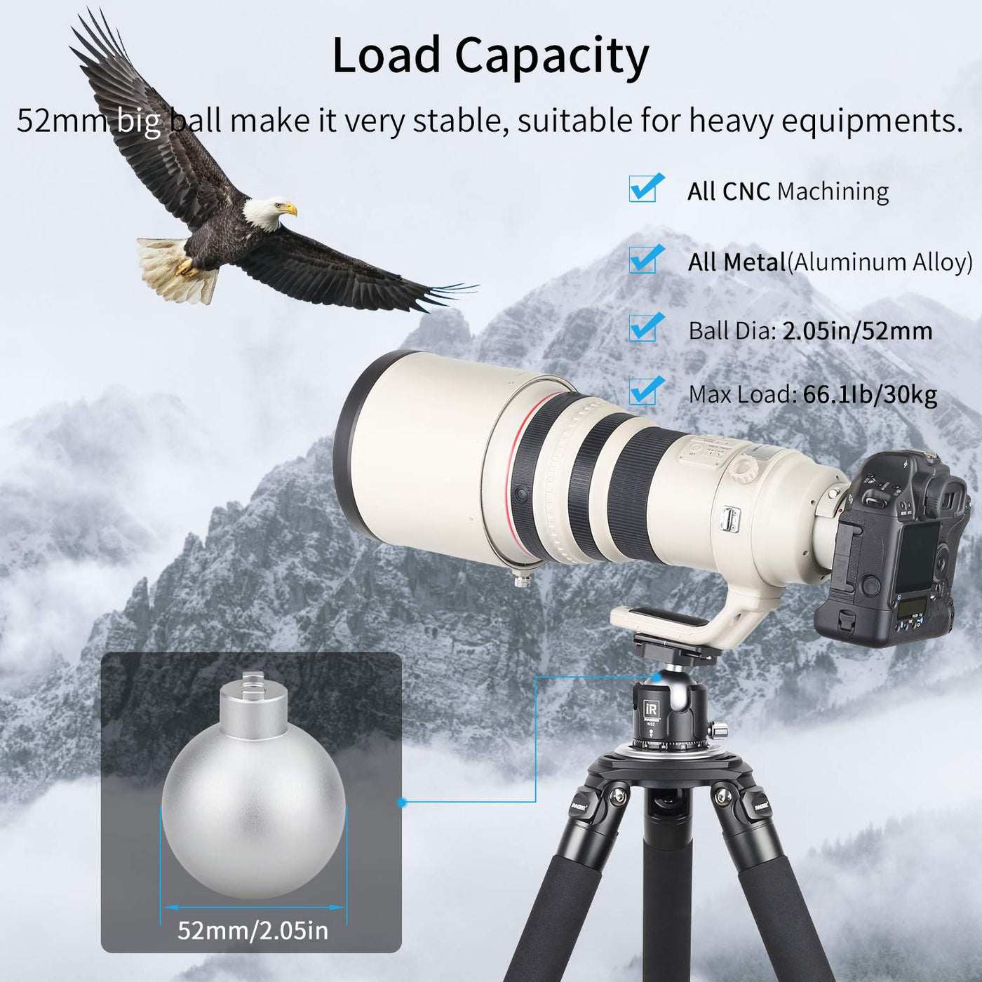 Low Profile Ball Head Metal Tripod Ball Head 52Mm Ball Diameter Innorel Panoramic Cnc Ball Heads Camera Mount With Two 1/4' Quick Release Plates For Tripod, Dslr, Camcorder, Max Load 66Lbs/30Kg