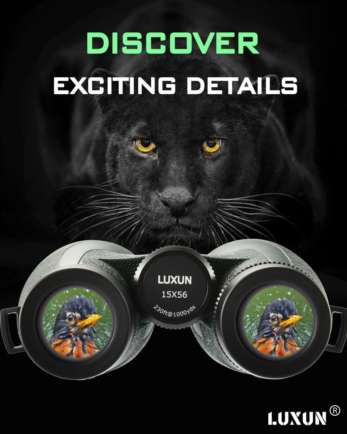 Luxun 15X56 Binoculars For Adults High Powered With Hd Optical System, Bak4 Prism & Fmc Coating Waterproof Binoculars For Huntin