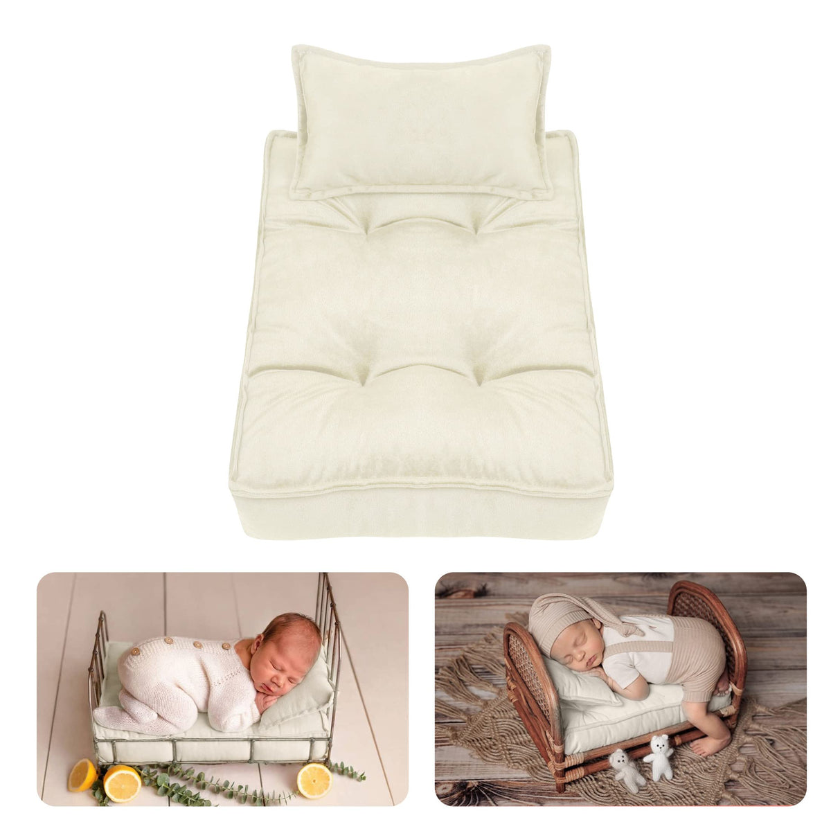 M&G House Newborn Photography Props Mattress Pillow Photography Accessories Baby Photoshoot Props Bed Mattress Bed Mat(Beige Whi