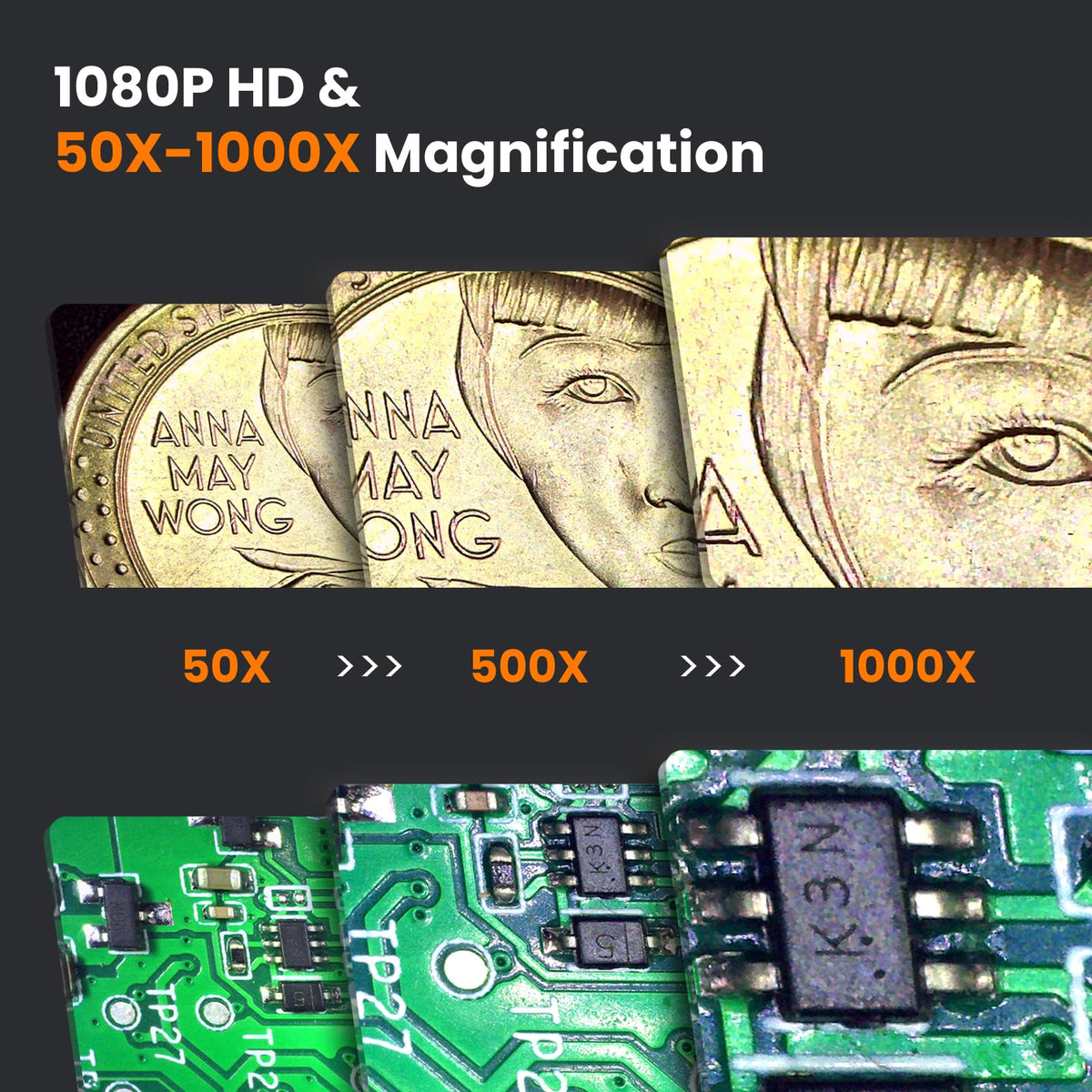 M2C Wireless Digital Microscope 50X 1000X Handheld Portable Microscope 1080P Hd With Adjustable Stand, Usb Mini Coin Microscope