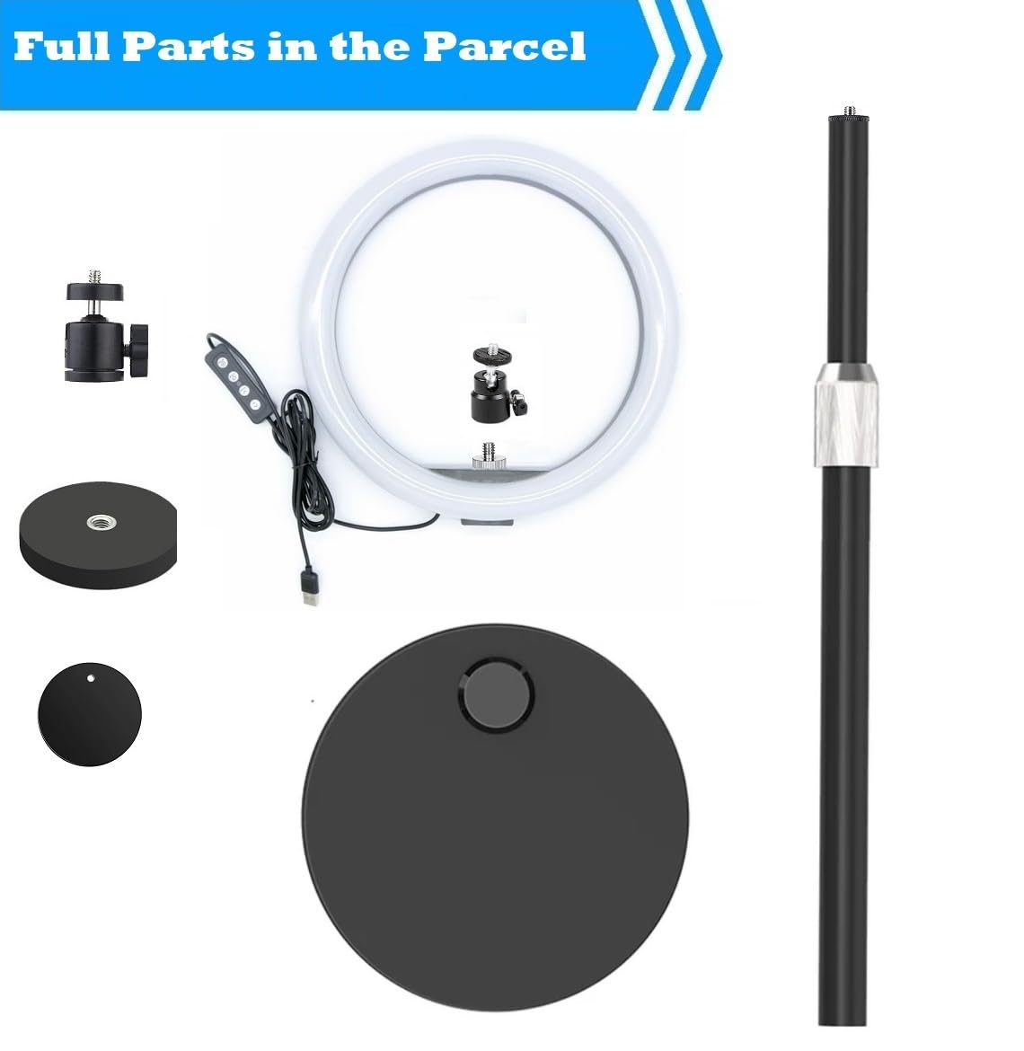 Magnetic Webcam Light With Stand,10 Inch Ring Light With Adjustable Desktop Mount Holder Compatible With Logitech C920 Streamcam C922 C930E C925E C615 Brio 501 301 101 4K C270 C310 Webcams. 10 Inches Ring Light Designed With 3 Light Modes (Cold/Natural/Warm Light) And 10 Adjustable Brightness Under Each Light Mode; Perfect For Providing Extra Light For Making Up, Photography Videos, Selfie,Live Streaming And Video Conference; Designed With A Usb Plug Power Supply (Cabel Length: 59 Inches/150 Centimeters); Comes With A 1/4''-20 Ball Head Adapter For Supporting 90 Degree Or 360 Degree Rotation Of The Ring Light; The Desktop Stand Height Can Be Adjusted By Screw-Knob In The Middle Of Pole; The Desktop Stand Max Hight 45.5Cm(18 Inches); Round Metal Dock Diameter: (5.9X5.9 Inches)15Cmx15Cm; Foldable Pole Made Of By Aluminum Alloy Material; Metal Stand Designed With Standard 1/4''-20 Thread. We Suggest The Maximum Weight To Hold 1.1Lbs/0.5Kg, It Can Support For Ring Lights, Led Video Lights, Smartphone Holders, And Light-Weight Cameras; Magnetic Sucker Mount Diamter 4.2Cm/1.65 Inches; The Magnetic Sucker Mount Was Coated With Soft Rubber, With 6 Neodymium Magnet For Sucking Your Webcam; Also Product Comes With A Extra Round Iron Plate For Stick On Your Webcam, For Those Webcams Can'T Be Sucked On The Magnetic Directly; What You Get: 1X Adjustable Pole; 1Xround Dock With Connector For Pole; 1X 10 Inches Ring Light With Ball-Head Adapter ; 1X Mini Ball-Head Adapter For Ring Light Inner Use; 1X Magnetic Sucker Mount; 1X Iron Round Plate With Adhesive; Compatible With Logitech C920 C922 C930 C925 Streamcam C615 Brio 501 301 101 4K C270 C310 Webcams; Compatible With Razer Kiyo, Kiyo Pro, Kiyo X Webcams; Compatible With Any Webcams Comes With/Without 1/4''-20 Interface;