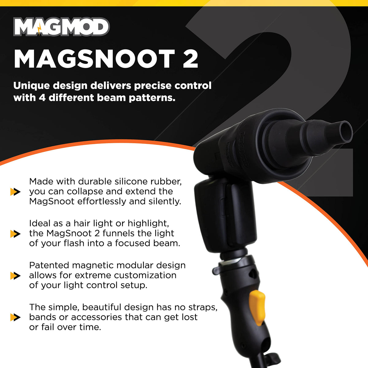 Q: Is the MagSnoot 2 compatible with all flash units?A: The MagSnoot 2 is designed for use with all MagMod modifiers and requires a MagGrip or MagGrip 2 to attach it to a compatible flash. Ensure you have the appropriate grip for seamless integration.
