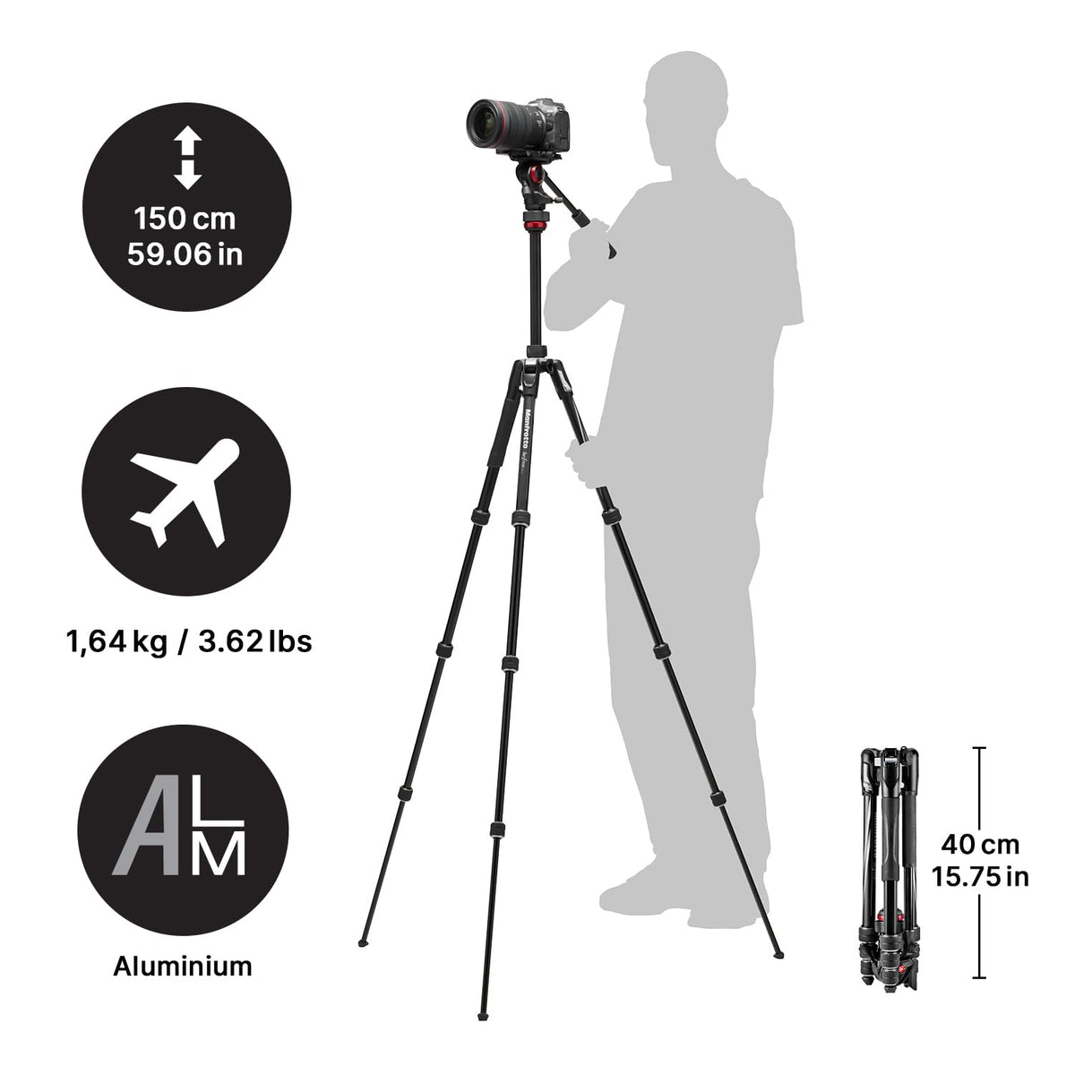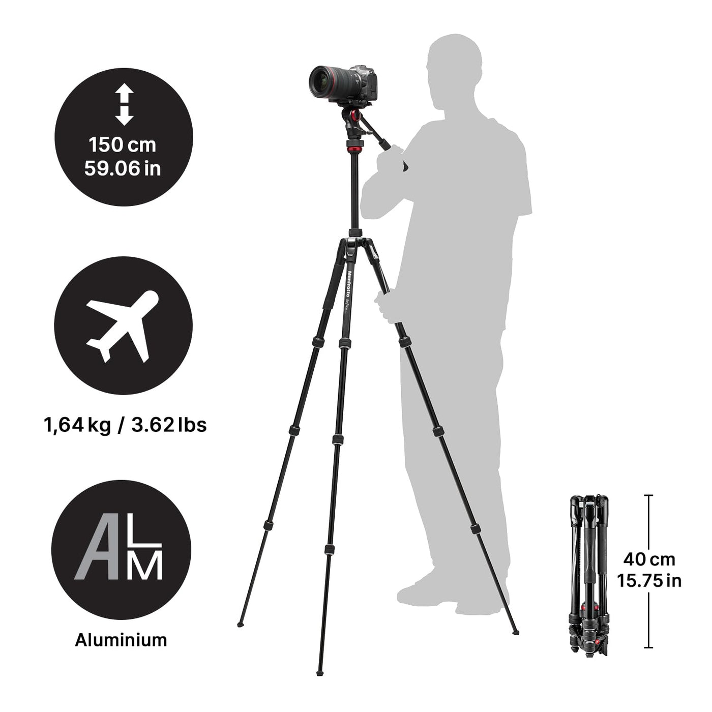 Manfrotto Befree Live 4 Section Aluminum Compact Travel Video Tripod With Fluid Head, Black/Silver