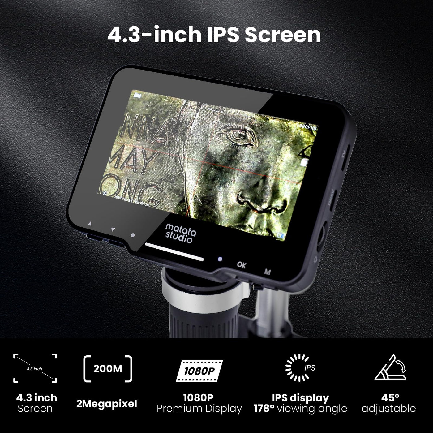 Matatastudio M2B 1000X Digital Microscope With 4.3'' Lcd Screen, 1080P Coin Magnifier, 8 Led Lights, Support Photo&Video, Adjust