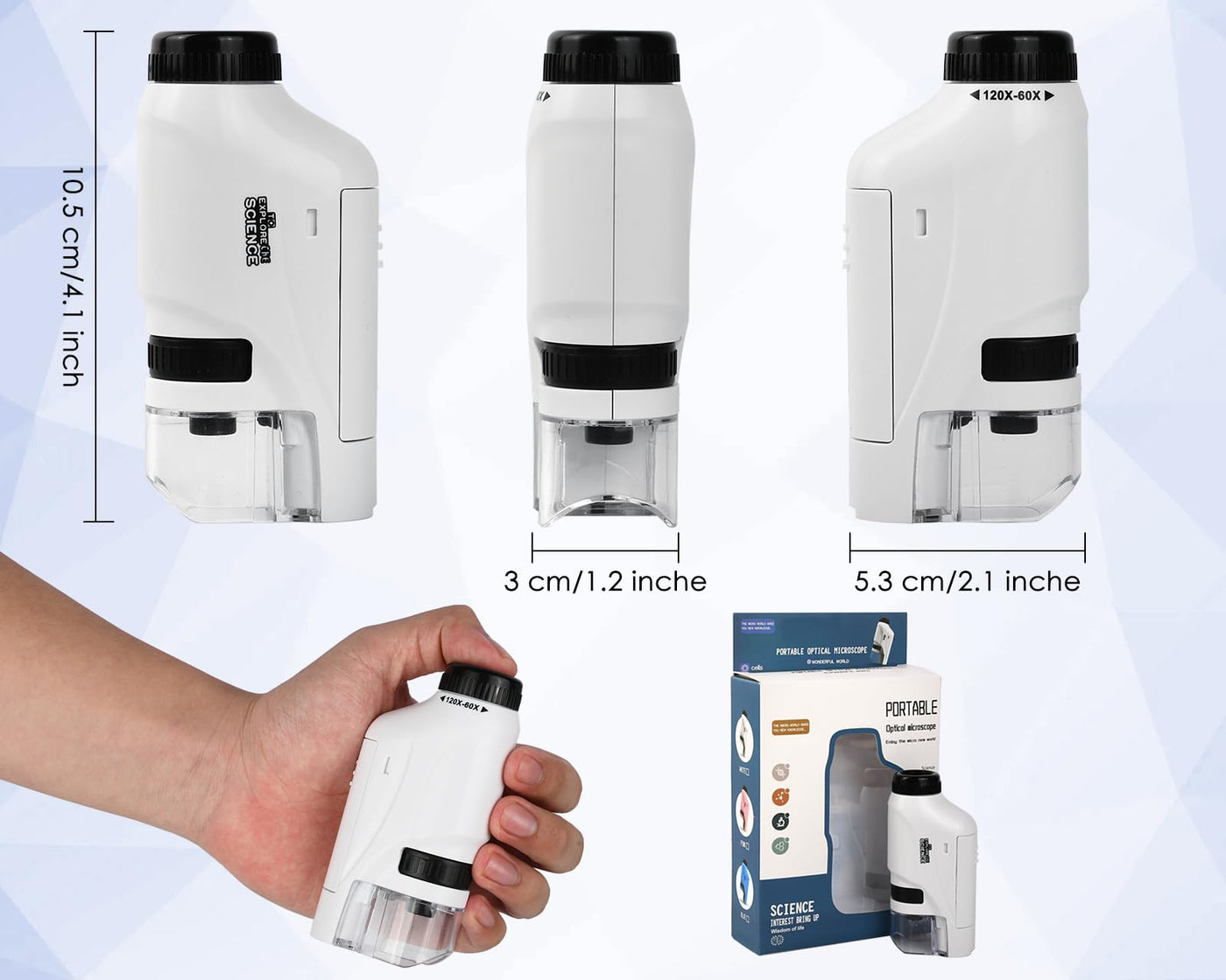 Q: Is this microscope suitable for outdoor use?A: Yes, the Mini Portable Handheld Microscope is designed for both indoor and outdoor use, making it a great companion for field trips and exploration.