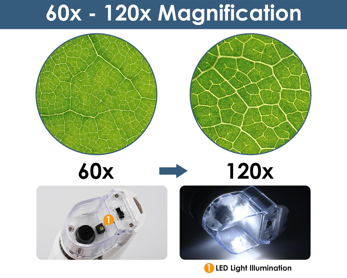 Microscope Kids 60X 120X Led Lighted Pocket Microscope Mini Portable Handheld Microscope For Student Science Gifts