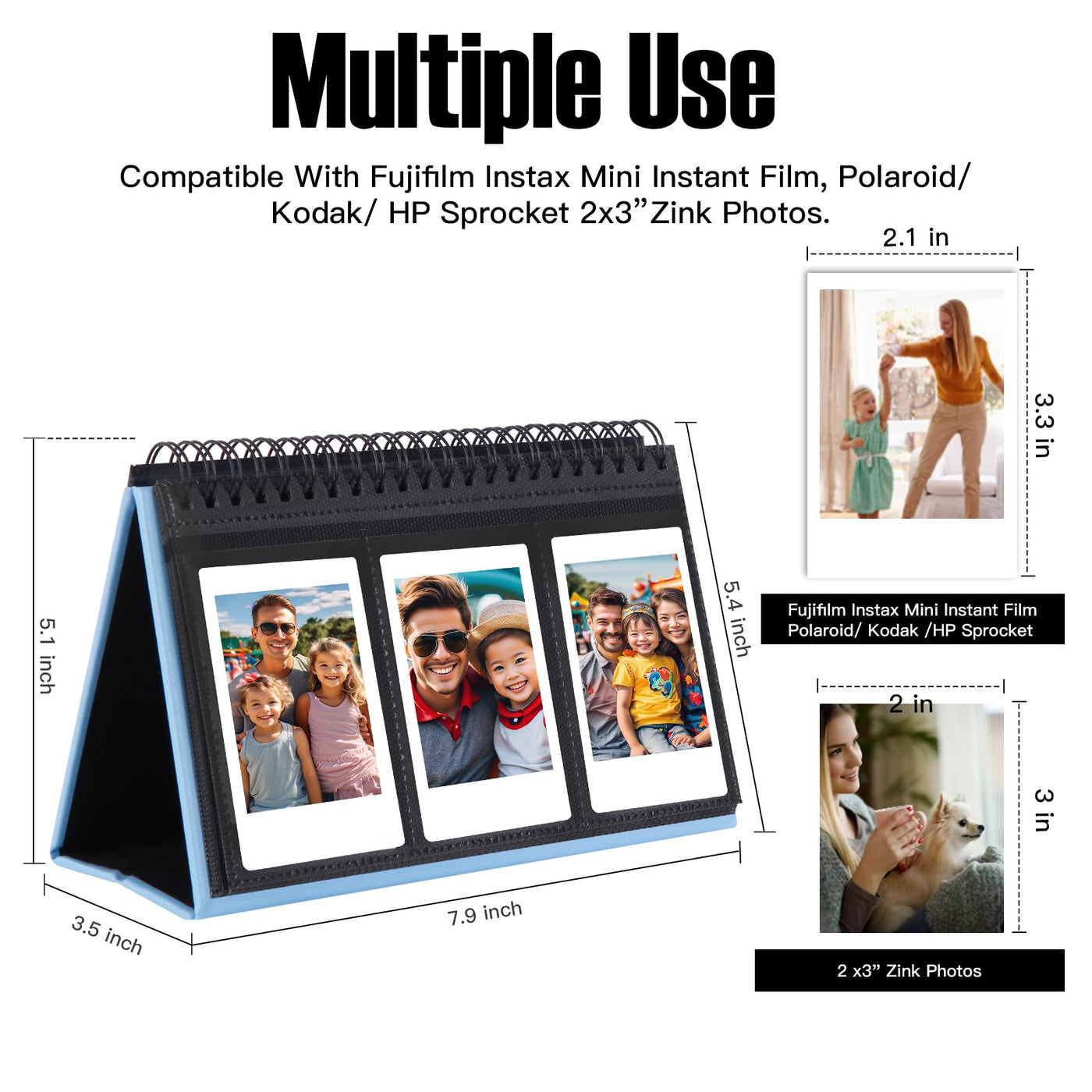96 Pockets Desk Calendar Album For Fujifilm Instax Mini Camera, Polaroid Camera, For Fujifilm Instax Mini 11 90 70 9 8+ 8 Liplay Instant Camera, Polaroid Snap Snaptouch Pic-300 Instant Camera (Blue)