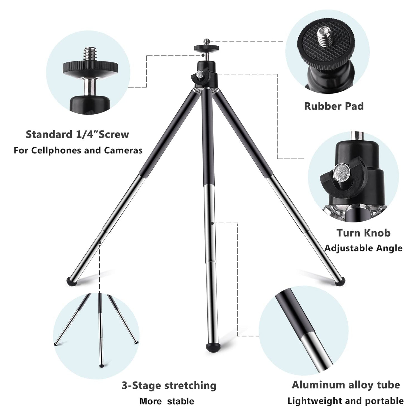 High Quality Tripod The Small Tripod Made Of High Quality Aluminum Alloy Not Plastic.Lightweight And Sturdy. Rotatable Ball Head Mini Ball Head For 360-Degree Rotation And 90-Degree Tilt . Get Just The Right Angle In One Smooth Move,Simply Turn And Tighten.