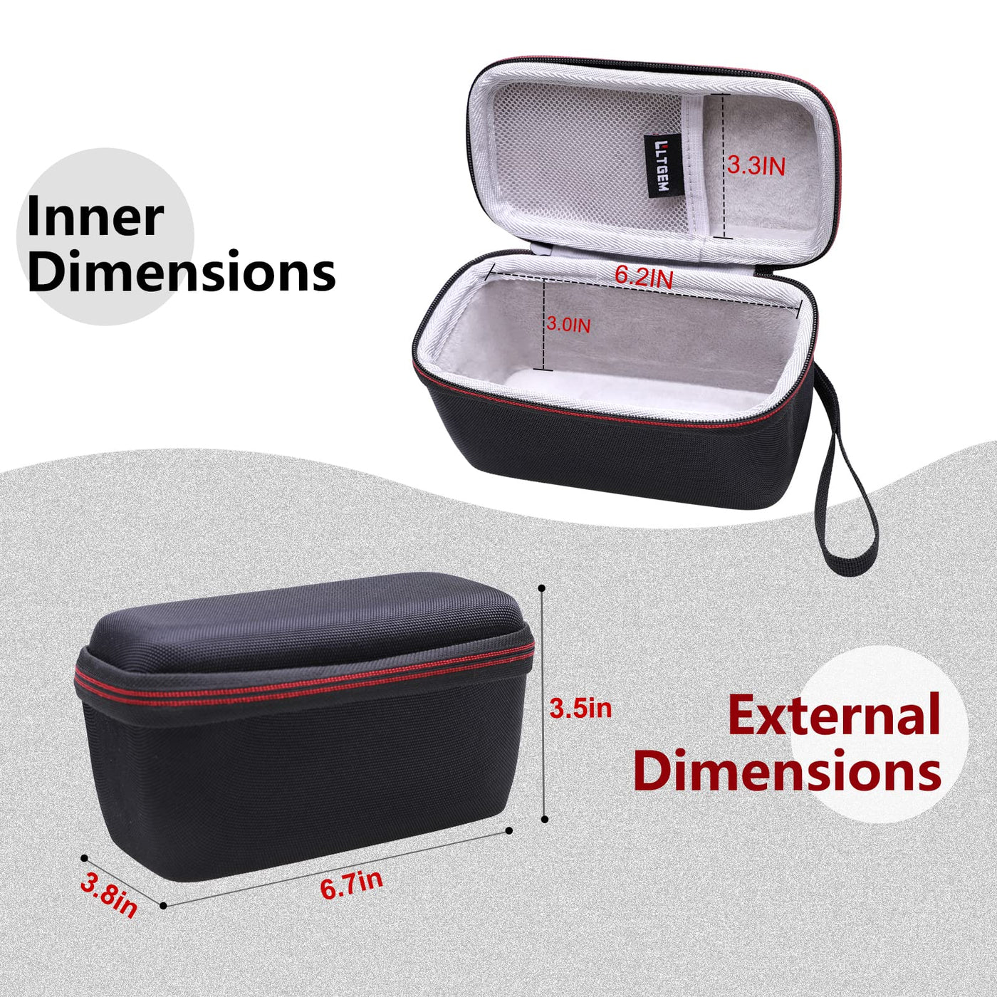 Q: What are the dimensions of the LTGEM Monocular case?A: The outer dimensions of the LTGEM Monocular case are 6.8 inches in length, 3.7 inches in width, and 3.5 inches in height.
