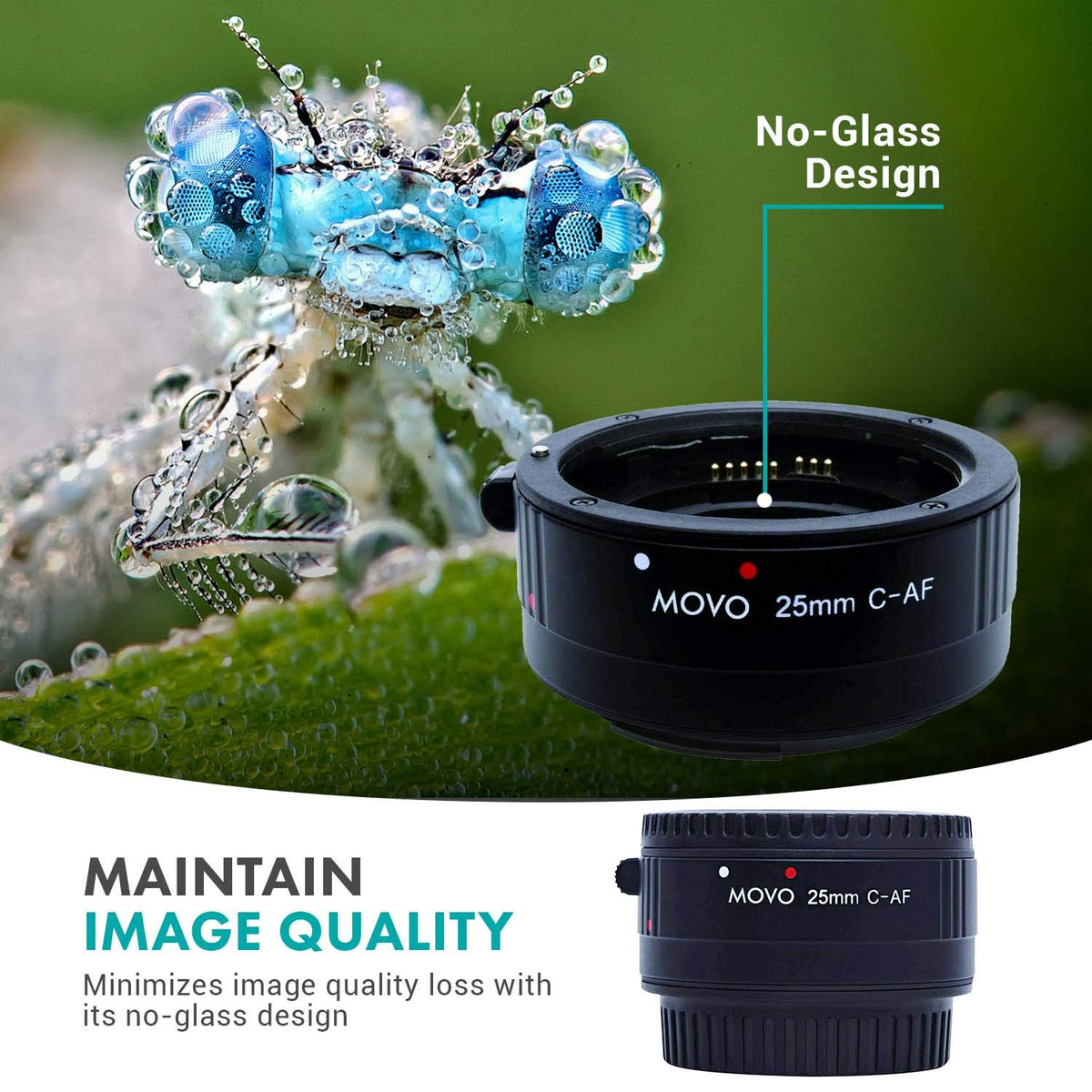 Transform Your Non-Macro Lenses Into A Tool For Professional-Grade Macro Photography With The Movo Photo Af 25Mm Macro Extension Tube To Create The Exact Magnification You Need To Capture The Perfect Macro Shot. The Longer The Tube Length The Closer The Lens Can Focus. Macro Photography Allows Extreme Close-Up Shots, Enlarging The Image Subject To Many Times Actual Size. Capture Nature At Its Most Vivid, Lifelike And Immediate; Photograph Insects, Plants And Flowers, Small Animals In Incredible And Dramatic Detail; Examine Textures As Never Before; Explore New Boundaries Of Photography. The Movo Photo Af 25Mm Macro Extension Tube Gives You The Tools To Reproduce Professional-Style Shots, Just Like You See In Magazines In Books. Extension Tubes Do Not Contain Optics, They Simply Reduce The Normal Minimum Focusing Distance Without Degrading Original Optical Quality. Conveniently Maintain Auto-Focus At F/5.6 Or Brighter To Ensure A Great Shot.