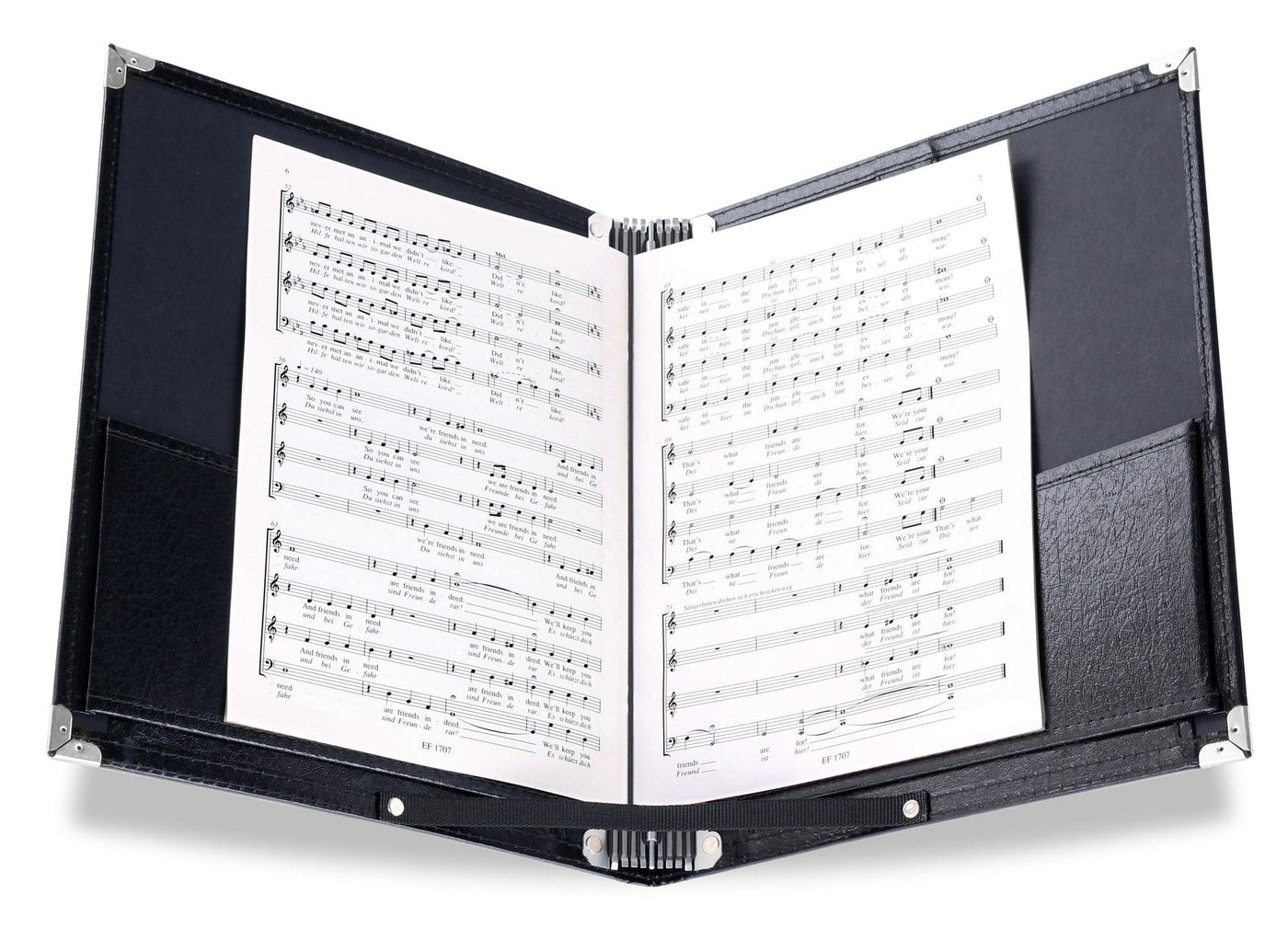 Durable Vegan Leather And Softly Padded Cover Music Folio Folder With Band Mount On Back Side For Better Support And Prevents Muscle Strain In The Supporting Hand And Facilitates Page Turning Product Size:95 X 12 X 2 D, Spine Thickness 2 Hold 50-80 Pages Of Standard Letter Size A4 Size Music Sheet (85 X 11) Dual Purpose Folio: 1) Choir Folder: 110A Opening For One Hand Holding Position 2) 180A Flat Opening For Use As A Music Piano Folder - Feature: Detachable Internal Retention Strap With 2 Adjustable Snap Setting 2 Expand Interior Pockets For Holding Additional Papers One Transparent Photo Id Holder Features Classic Metal Corners For Protection And Durability (Paper Is Not Come With The Purchase