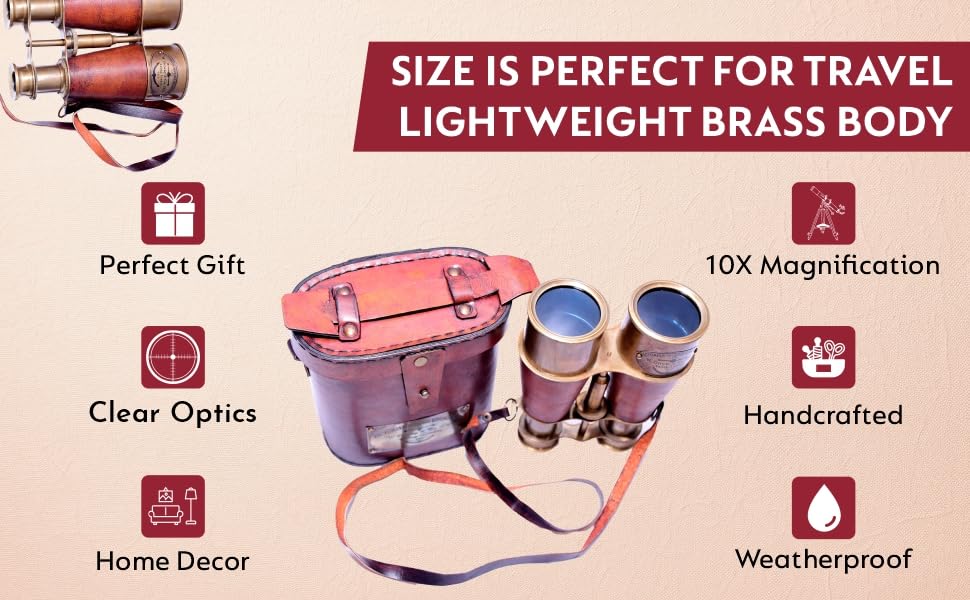 Quality Item Is Worth Much More Than The We Have Selected Initially. Leather Cased Brass Binoculars This Is A Beautiful Solid Brass Antique Reproduction Telescope. You Can Take This As Telescope For Antique Gifts. Leather Box Will Keep It Safe For Years, Lenses Are Not That High Zoom Features Like Modern Ones But Yes Good For An Antique Piece 20 X Zoom Classical Item Is In A Leather Box Which Looks Totally Authentic And Can Be A Sign Of Royalty Classy Orange Leather Binoculars Are Made By Skilled Artisan And Rare To Find In Marketplaces Or On High Streets,