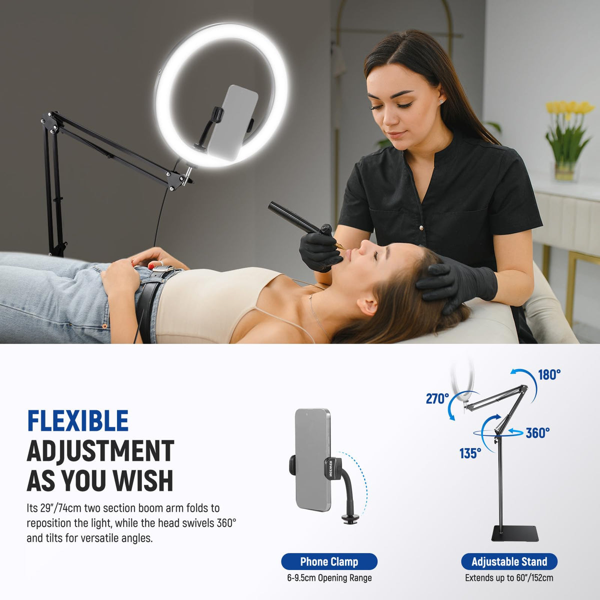 Neewer 12 24W High Power Led Ring Light Compatible With Iphone, 60 Overhead Folding Light Stand/Phone Holder Mount For Video Rec