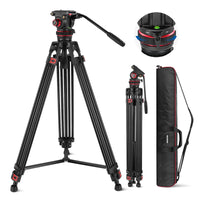 Neewer 74'' Video Tripod With Adjustable Damping Fluid Head, Metal Heavy Duty Dual Mode Qr Plate, Flexible 360 Pan&+90/ 75 Tilt,