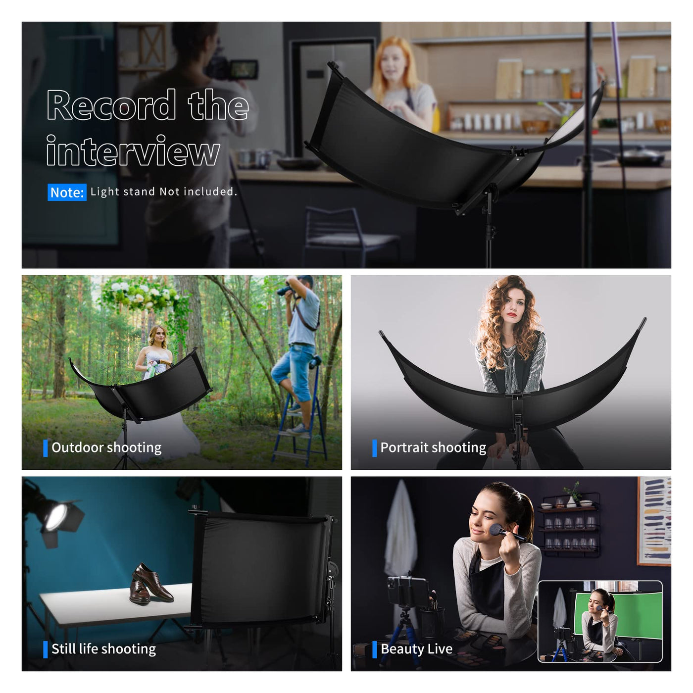 Neewer Clamshell Light Reflector Diffuser, 66 24 Photography Curved Lighting Reflector With Black, Silver, White, Gold, C