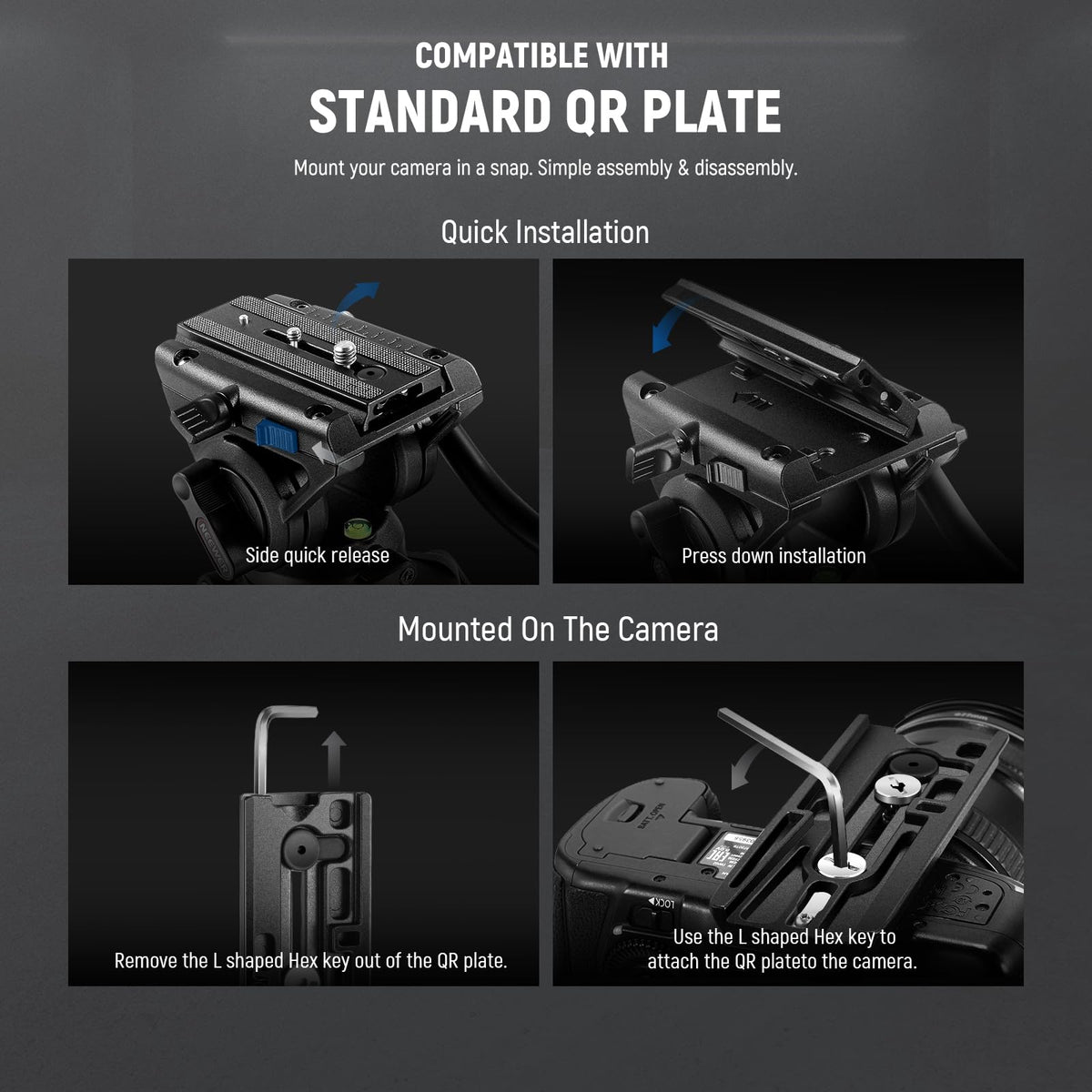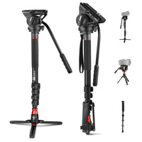 Neewer Professional Camera Monopod With Feet, 70.5''/179Cm Telescopic Portable Aluminum Travel Monopod With Pan Tilt Fluid Head