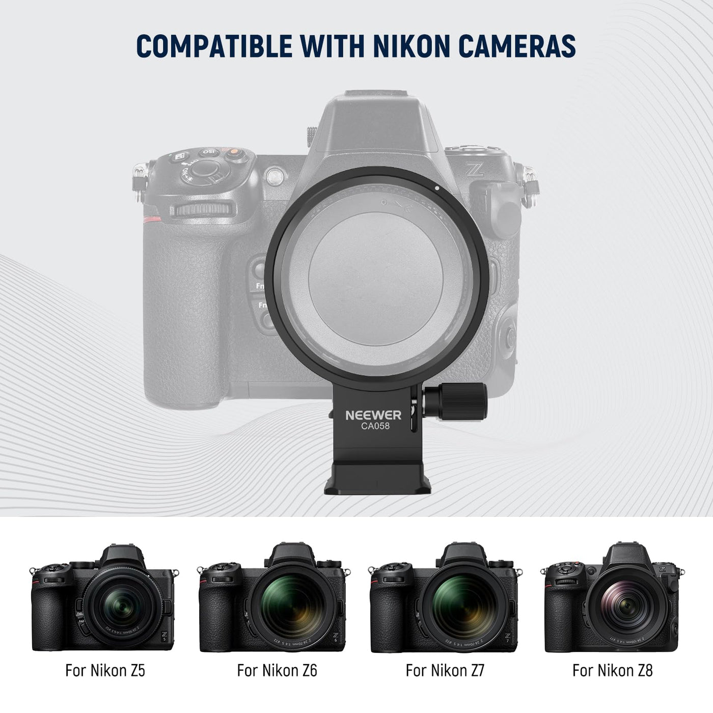 ?Flexible Angles & Improved Balance? This Neewer Ca058 Rotatable Collar Camera Mount Plate Seamless Quick Horizontal To Vertical Shots Without Compromising Stability, And Enhances Balance When Using Telephoto Or Other Heavy Lenses. Compatible With Nikon Z8 Z7 Ii Z6 Ii Z5 Cameras Ftz Ii Mount Adapter Z 24-70Mm F/2.8 50Mm F/1.2 24-120Mm F/4 14-24Mm F/2.8 85Mm F/1.8 24-70Mm F/4 14-30Mm F/4 24-200Mm F/4-6.3 Lenses. Note: Not Compatible With Z 70-200Mm F2.8 | ?Quick Horizontal To Vertical Switch? The Camera Rotating Plate Rotates The Camera Lens Collar 90 Degrees And Achieves A Quick, Easy Switch Between Landscape (Horizontal) And Portrait (Vertical) Orientations On A Tripod Or Gimbal Stabilizer Without Adjusting The Lens'S Optical Axis. Note: Only Supports Lens Adapter Rings With Less Than 70Mm Diameter. For Safety, Please Remove The Lens Before Installation/Removal | ?Secure Lock Camera Lenses?The Camera Lens Collar Firmly Fastens Your Camera To The Mounting Plate Via An Anti Twist 1/4'' Screw, With Cross Patterned Rubber Pads For Stability. This Vertical Camera Mount Features Two Collar Tabs For Added Lens Security And Allows Slightly Vertical Adjustment, Ensuring Proper Centering For Lenses Of Various Sizes | ?Quick Release Camera Mounting?This Vertical Camera Tripod Lens Mount Is Equipped With A Quick Release Base Plate That Is Both Compatible With Arca Swiss Dji Rs3 Pro Rs3 Mini Rs3 Rs2 Pro Rs2 Vertical Camera Mount, And Easily Installed On Any Tripod, Gimbal Stablizer, Monopod, And Camera Slider With An Identical Mounting System. The 4 X 1/4'' And 1 X 3/8'' Threads On The Bracket Bottom For Camera Rigs, Hand Grips, Magic Arms And More | ?Cnc Aluminum Build & Full Access To Screen?Made Of Cnc Anodized Aluminum Alloy, This Ultra Slim Camera Lens Collar Is Robust, Durable, Anti Rust And Scratch Resistant, And Allows Full Access To The Camera'S Lcd Flip Screen, Ports, And Functions Even When Switching Orientations Or Mounted On A Tripod