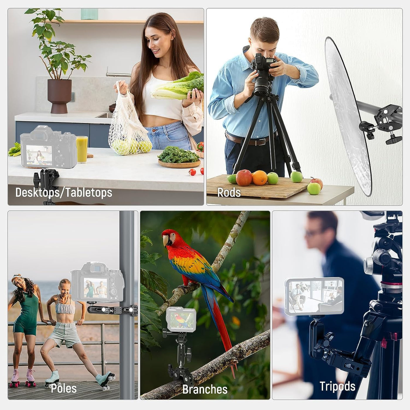 Neewer Super Clamp With 3'' Dual Ballhead Magic Arm, Cold Shoe, 1/4'' Threads, Phone/Action Camera Mount Adapter For Desk Tripod