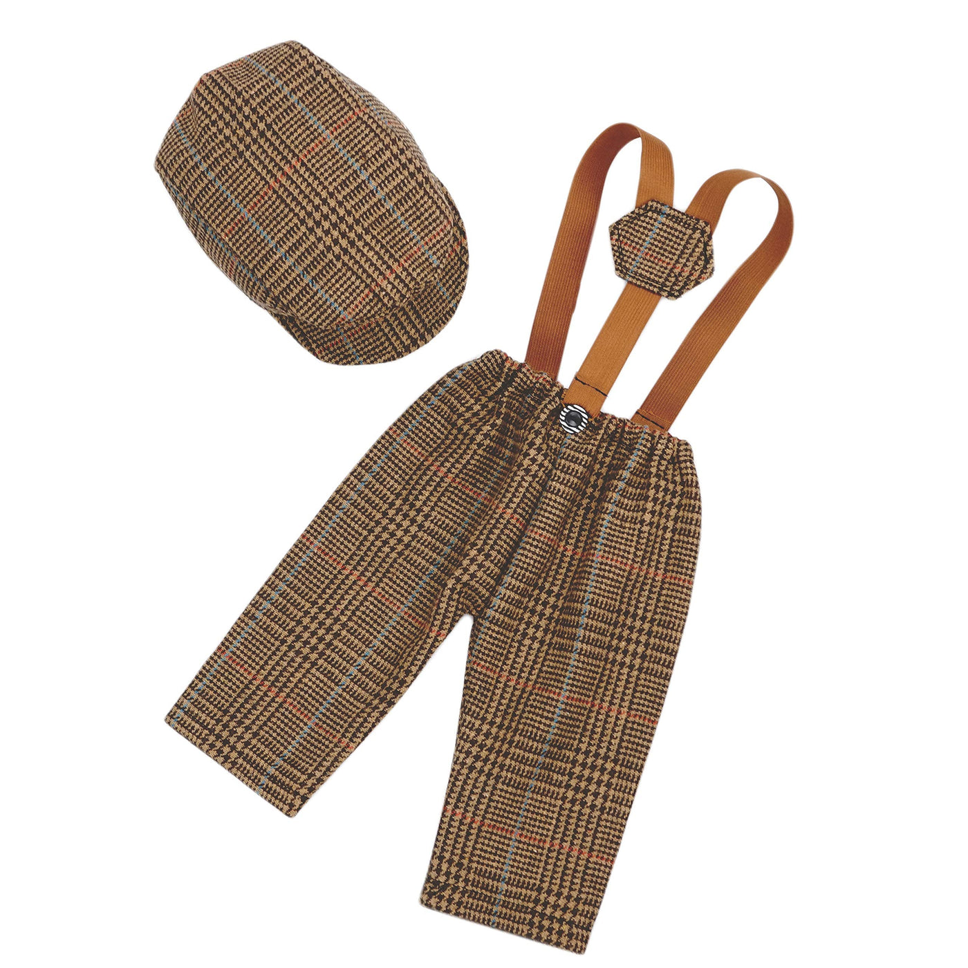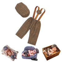 Newborn Monthly Baby Photo Props Stripe Cool Boys Cap Rompers Photography (Dark Coffee)