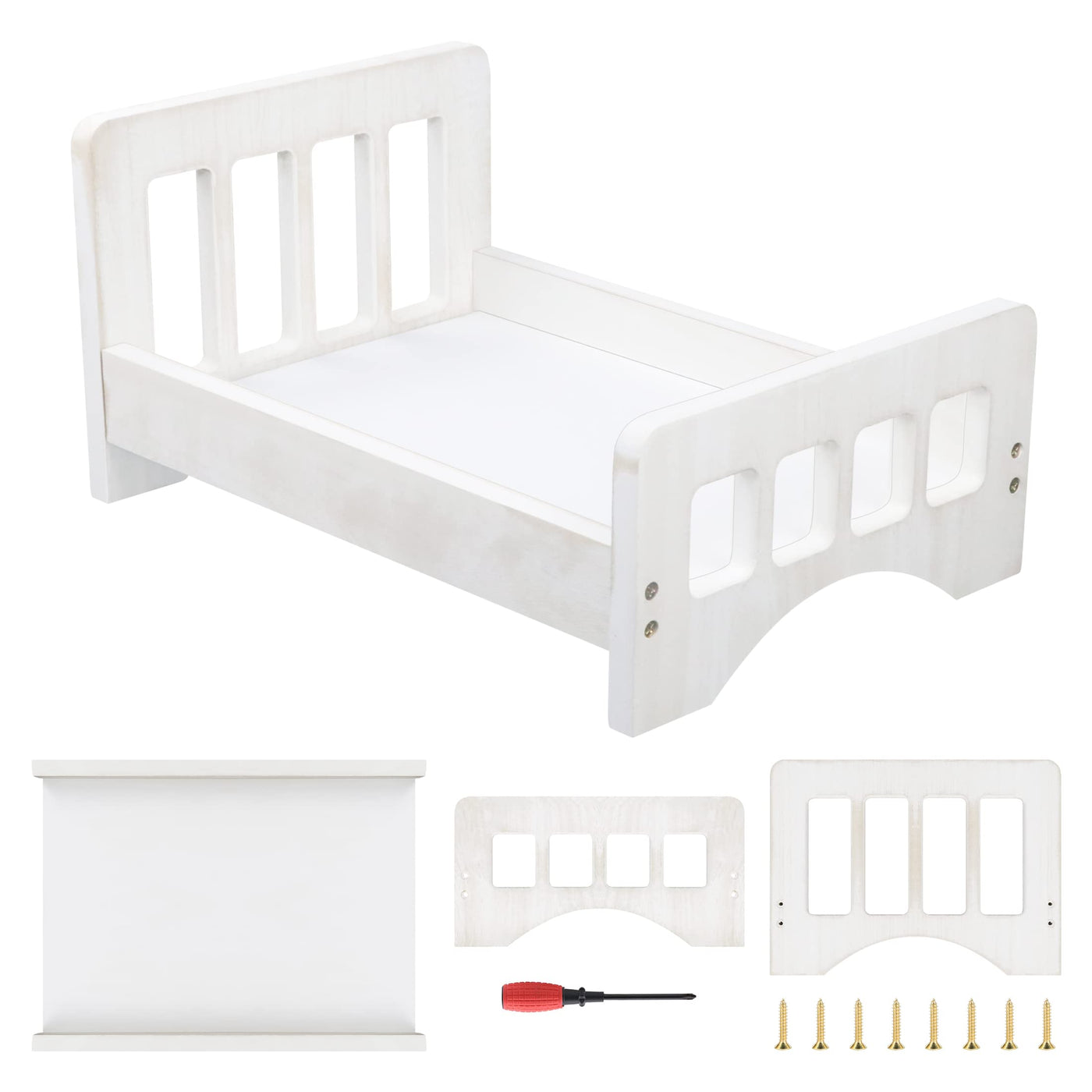 Newborn Photography Props Wooden Bed - Baby Photoshoot Props Doll White Wood Mini Bed For Photography Baby Make The Old Style Ph