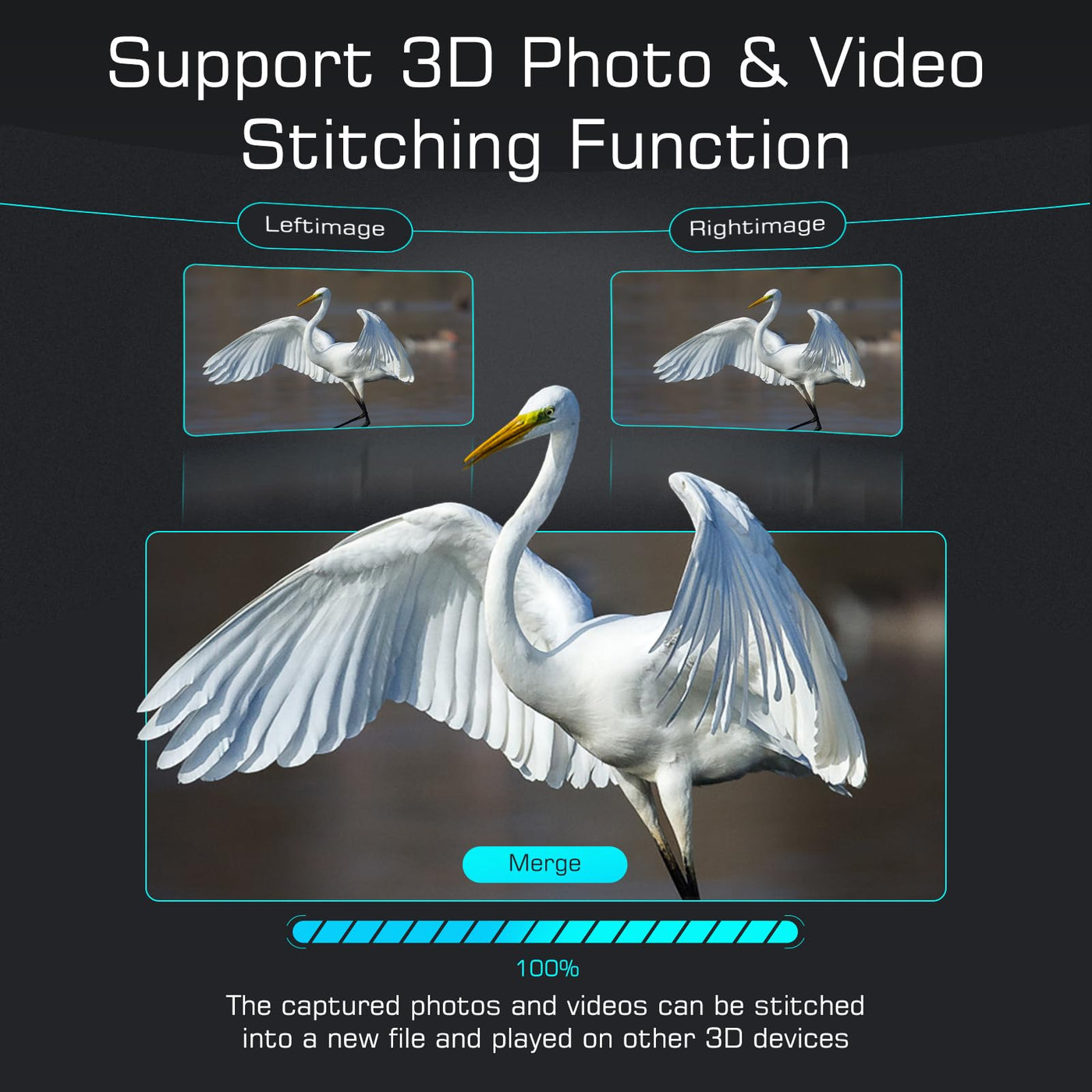 Q: What are the key features of the Dsoon 3D VR Night Vision Goggles?A: The Dsoon 3D VR Night Vision Goggles feature advanced 3D imaging technology, delivering 8K (8064x3024) photo and 4K (3840x1080) video resolutions. They include seamless 3D integration for immersive content, a lift-to-wake technology for quick activation, independent adjustable dual lenses for personalized settings, and powerful night vision performance with 6x digital zoom.
