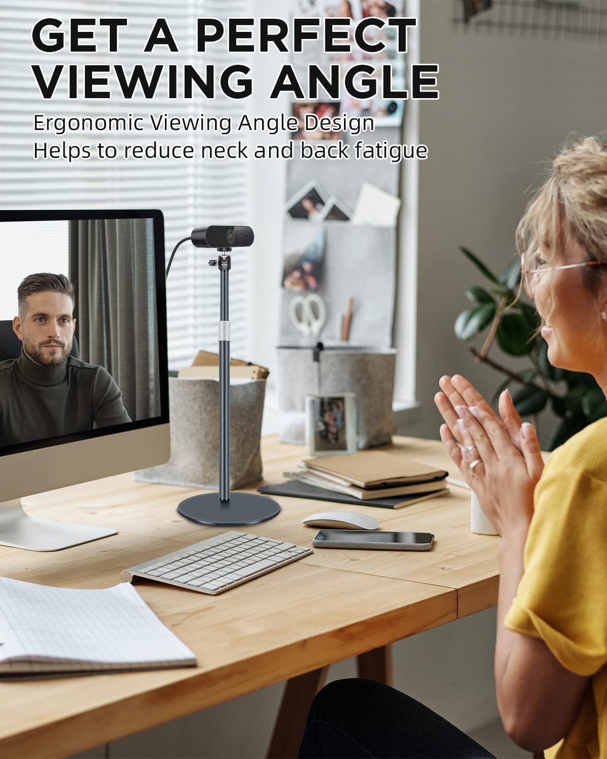 Webcam Tripod Comes With A Heavy Metal Base To To Keep It Stable! The Bottom Of The Base With Foam To Avoid Scratching The Surface Of The Table Or Desk. Our Webcam Stand With Lock Knob, And You Can Adjust The Height As You Like, Without Worrying About Falling, Allows You To Get The Best Picture Quality In Your Live Streaming Or Online Learning. This Webcam Stand Can Provid You Comfortable Viewing Angle Which Helps To Fix Your Posture And Reduce Neck & Back Strain. The Height Can Be Easily Adjusted Between 11.8' To 23.6', Perfect For Live Streaming On Tiktok/Youtube, Zoom Calls. Look Your Best When The Camera Turns On