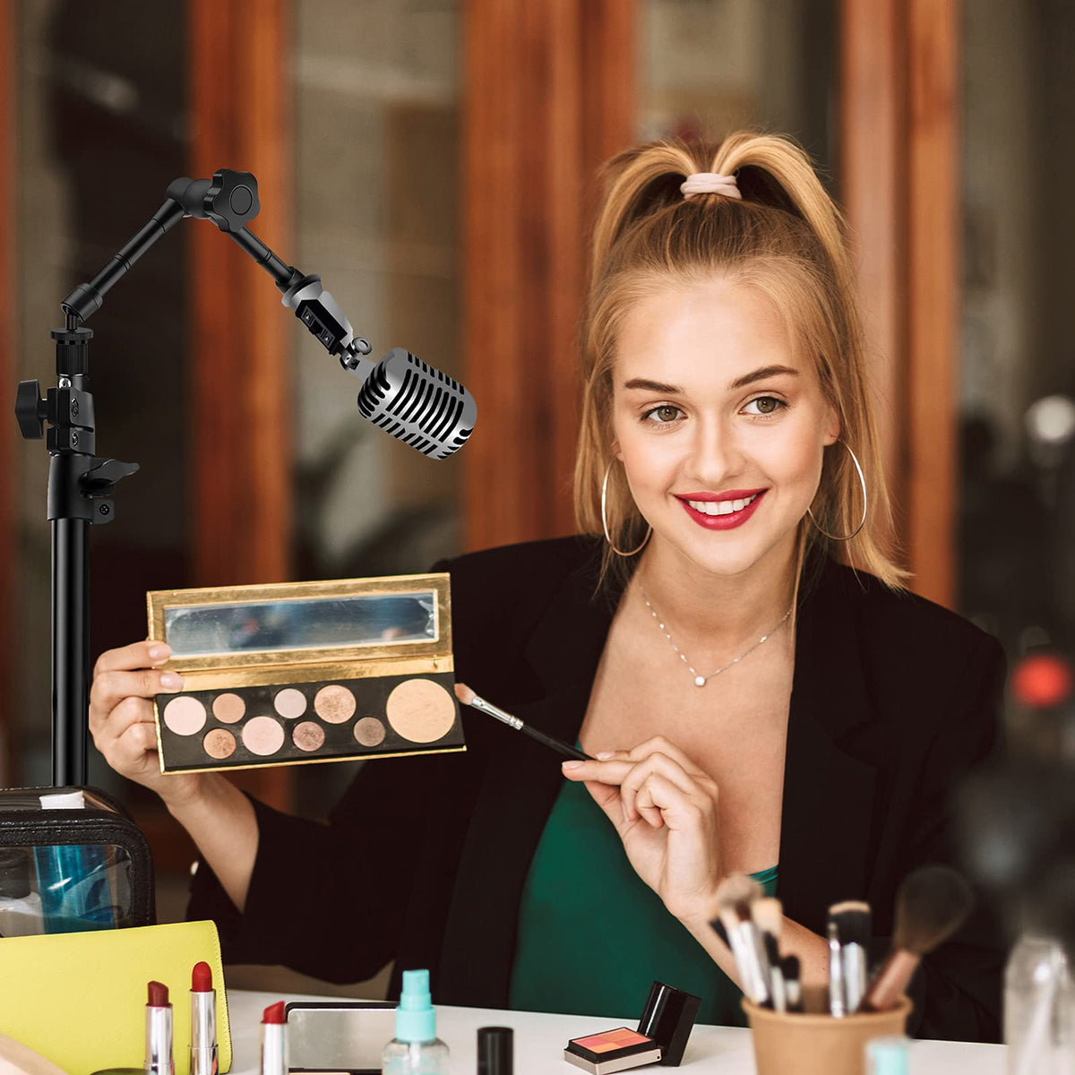 Desktop C-Clamp Stand Top With 1/4'' Thread, Come With Ball Head And A 1/4 Hot Shoe Interface Adapter (Removable). And Asy To Install Microphone, Led Video Light, Monitor To Dslr, Camcorder Or Digital Camera, Flash Remote Trigger Or Adapt Anything Via The 1/4' Screw On The Top Of The Mount. The Magic Arm Best Load < 1.5Kg (3.3Lb). | ?Adjustablement With Locking Knob?Adjustable Desktop C-Clamp Stand: The S Size Height Could Be Extended From 11.5 To 21.5 Inch As You Like. The Ball Head Can Ensure 360 Degree Horizontal Rotating And From -90 Degree To 90 Degree Tilting For Panoramic Photography When Adjusting The Angle. You Can Use The Knob To Adjust To The Desired Angle To Meet Your Needs At Different Angles. | Made Of Highly-Durable Aluminum-Alloy Material With Stainless Steel, Using A More Stable Structure. The Hot Shoe And C Clamp Clip With Rubber-Padded Mount On The Top To Protect Your Equipment Or Table From Potential Scratches Between Your Camera And The Mounting Part. The Adjustable Light Stand With Locking Control Knobs To Release Or Enlarge The Tension Which Can Give All Position Movement As You Want. | ?Flexible Position? With A 360 Swivel Head At The End Of The Magic Arm Makes You A Comfortable Use When You Need Any Angle Of The Device. With Its Solid-Metal Clamps, Adjustable And Sturdy Stand. Mounts To The Back Of Your Desk (Range From 0.5 To 3.5'' Thickness) Via A Heavy-Duty C-Clamp Or Optional Grommet Mount. Our Desk Mount Stand Can Be Adjusted To Any Thickness Within Seconds As Needed. | ?Package List And Service?1*Ball Head, 1*Hot Shoe, 1*Desk Light Stand, 1*Magic Arm. Welcome To Send Email To Us When You Have Questions.