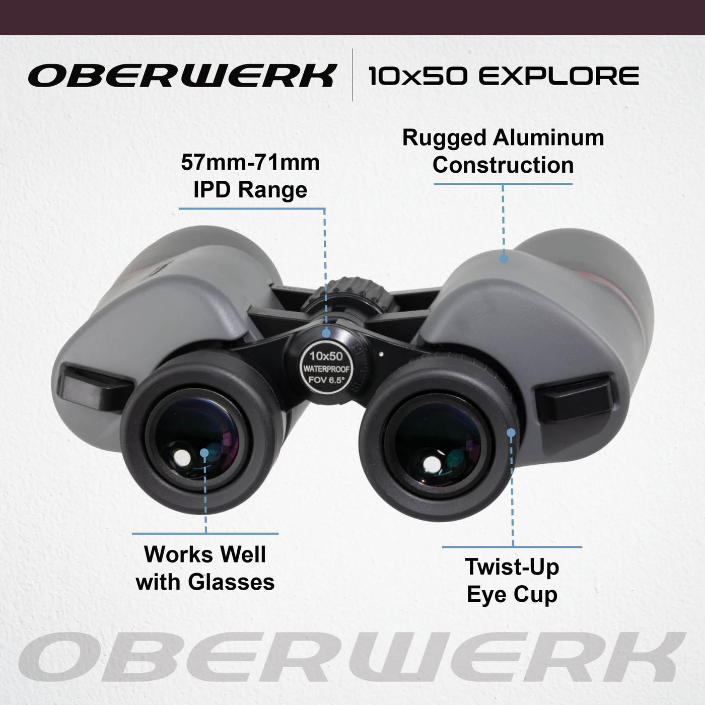 Oberwerk 10X50 Explore Binoculars Compact & Lightweight Binoculars For Adults | Bird Watching, Hiking, & Outdoor Use | Wide 6.