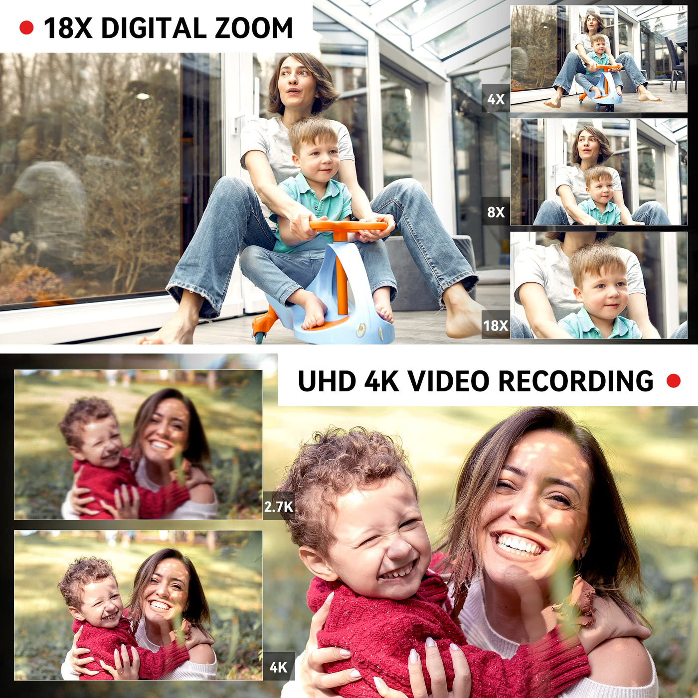 Oiexi Uhd 4K Video Camera Camcorder With 18X Digital Zoom,64Mp Digital Camera Recorder,4.0 Inch Rotating Touchscreen,64Gb Sd Car