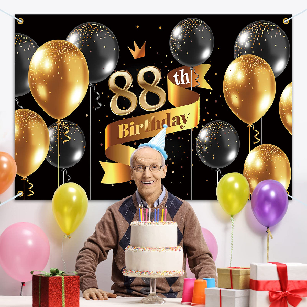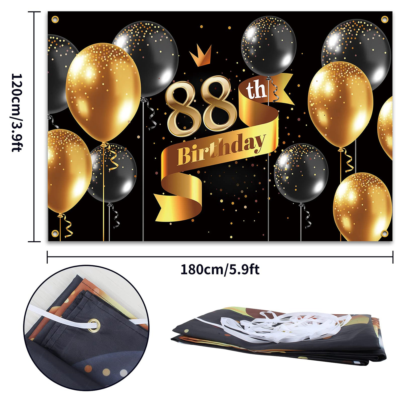 Pakboom Happy 88Th Birthday Backdrop Banner 88 Birthday Party Decorations Supplies For Men Black Gold 3.9 X 5.9Ft
