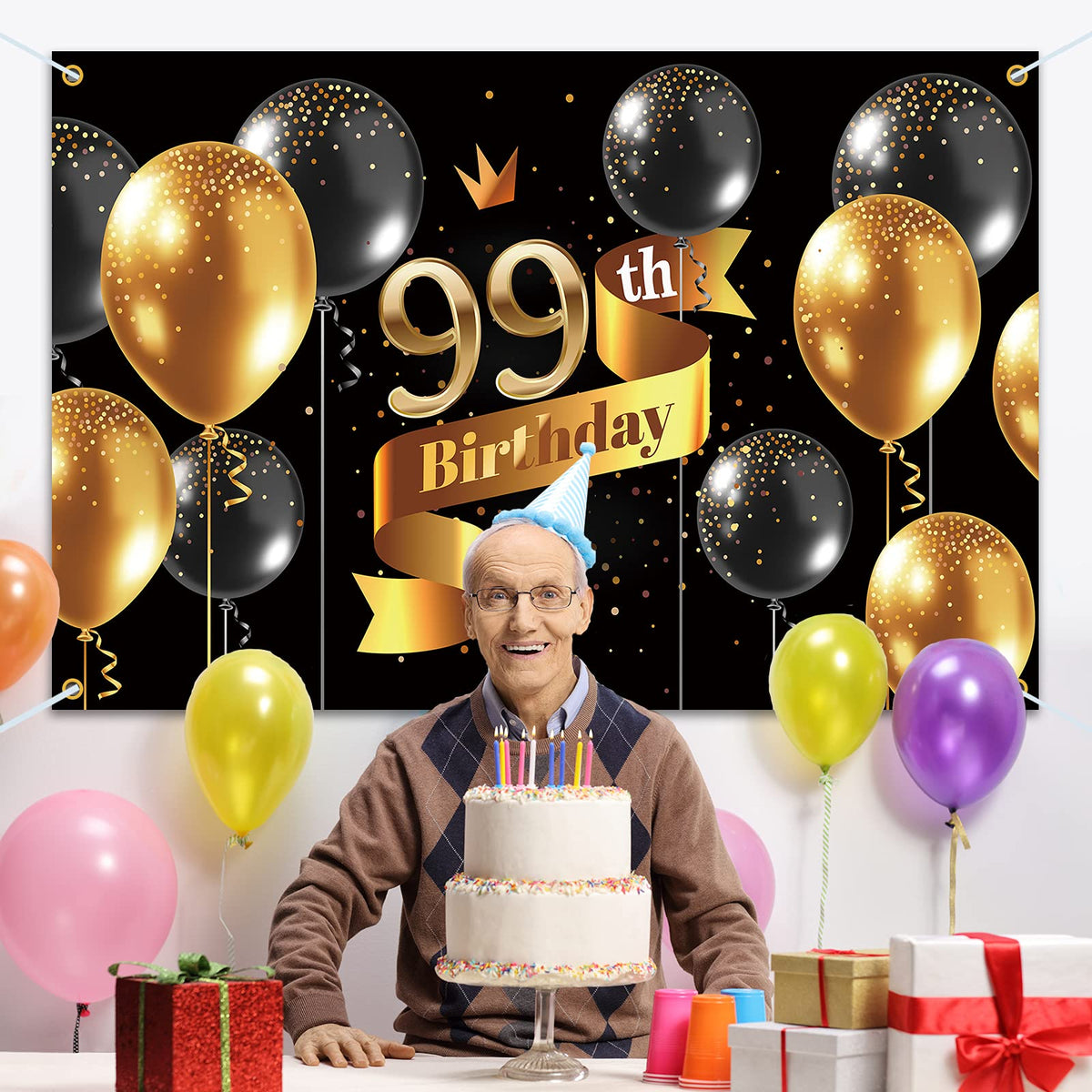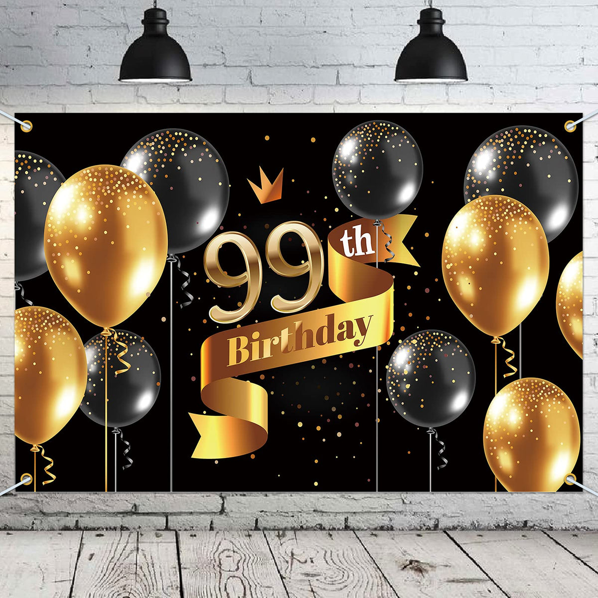Pakboom Happy 99Th Birthday Backdrop Banner 99 Birthday Party Decorations Supplies For Men Black Gold 3.9 X 5.9Ft