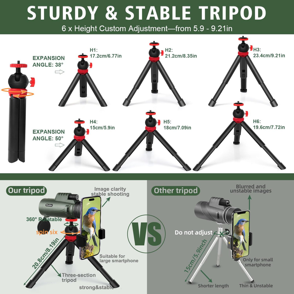 Q: Is the Pankoo monocular suitable for smartphone use?A: Yes, the Pankoo monocular comes with a high-quality smartphone holder, enabling you to capture images and videos easily while using the monocular.