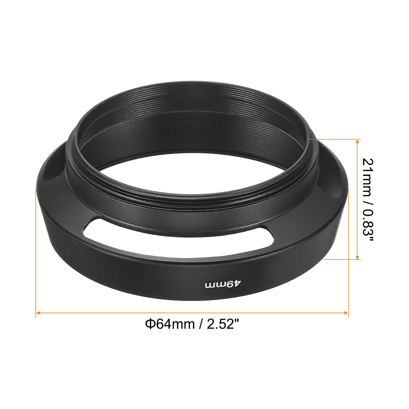 Our Lens Hood Offers A Versatile And Reliable Solution For Photographers Looking To Improve Their Image Quality While Protecting Their Lenses From Damage. Its Durable Alloy Material, Anti-Reflective Design, And Protective Function Make It An Essential Tool In Outdoor Or Low-Light Photography.Specificationcolor: Blackmaterial: Alloyfit Lens Thread Size: 49Mmtotal Size: 64 X 21Mm / 2.52 X 0.83 Inch (D*H)Hood Height(Not Include Thread): 11Mm / 0.43 Inchpacking List: 1 X Lens Hoodadvantagemade From Alloy Material That Is Durable And Long-Lasting. The Surface Has Been Treated With A Matte Finish, Giving It A Sleek And Modern Look.Features An Internal Anti-Reflective Design That Helps Prevent Light From Entering The Lens During Photography, Especially In Low-Light Conditions. It Also Protects The Lens From Accidental Damage And Prevents Fingers From Touching The Surface Of The Lens. Additionally, It Provides Some Protection Against Wind, Sand, Rain, And Snow, Making It Suitable For Outdoor Photography. Instructionit Helps To Reduce Glare And Unwanted Reflection, Ensuring That Your Photos Are Sharp And Clear. Its Unique Design Also Protects Your Lens From Damage, Extending Its Lifespan.Note: Always Ensure That The Lens Hood Is Properly Attached To The Lens Before Use.