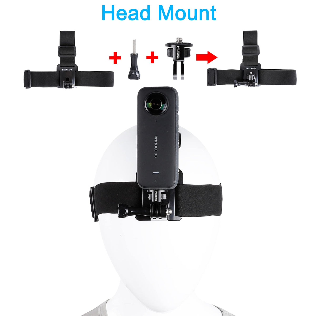 Pellking Accessories Kit For Insta360 X4 Go 3S One X3 X2 X Rs R, 4In1 Chest Strap Mount Harness/Head Mount/Neck Holder/Backpack Strap Mount For Insta 360 Gopro Dji Action Camera