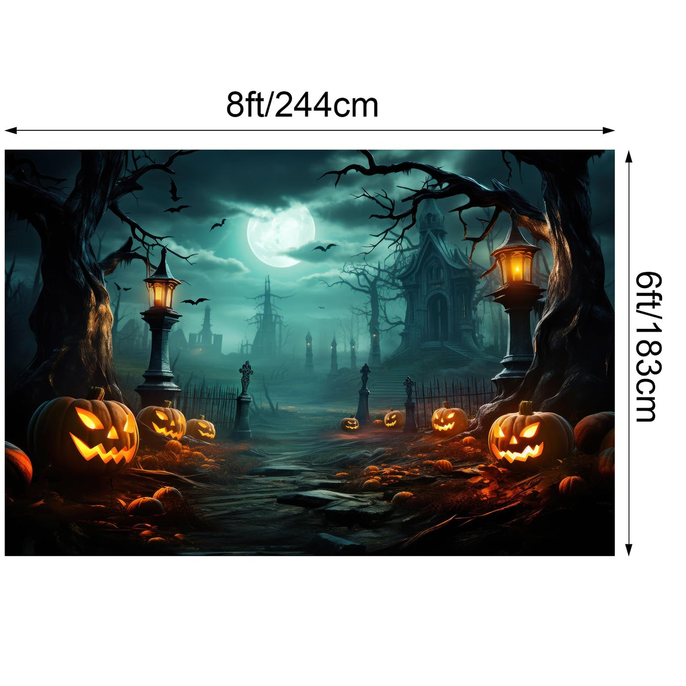Peryiter 8 X 6 Ft Halloween Backdrop For Photography Horror Moon Night Pumpkin Photo Background Party Decorations Photo Props