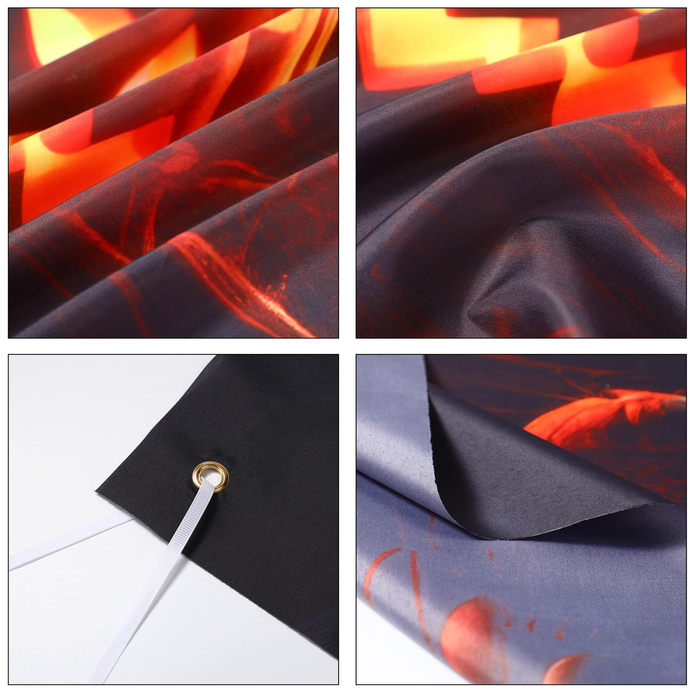 Q: What material is the Halloween backdrop made of?A: This Halloween backdrop is crafted from lightweight and sturdy polyester material, which is resistant to wrinkles and ensures durability for repeated use.