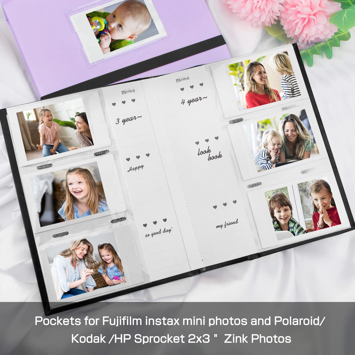 Photo Album For Fujifilm Instax Mini Camera, 180 Pockets Mini Album With Memo Areas, 2X3 Photo Album For Polaroid 2X3 Mini Camera/Fujifilm Instax Mini 1112 9 8 40 Evo Instant Camera, Black