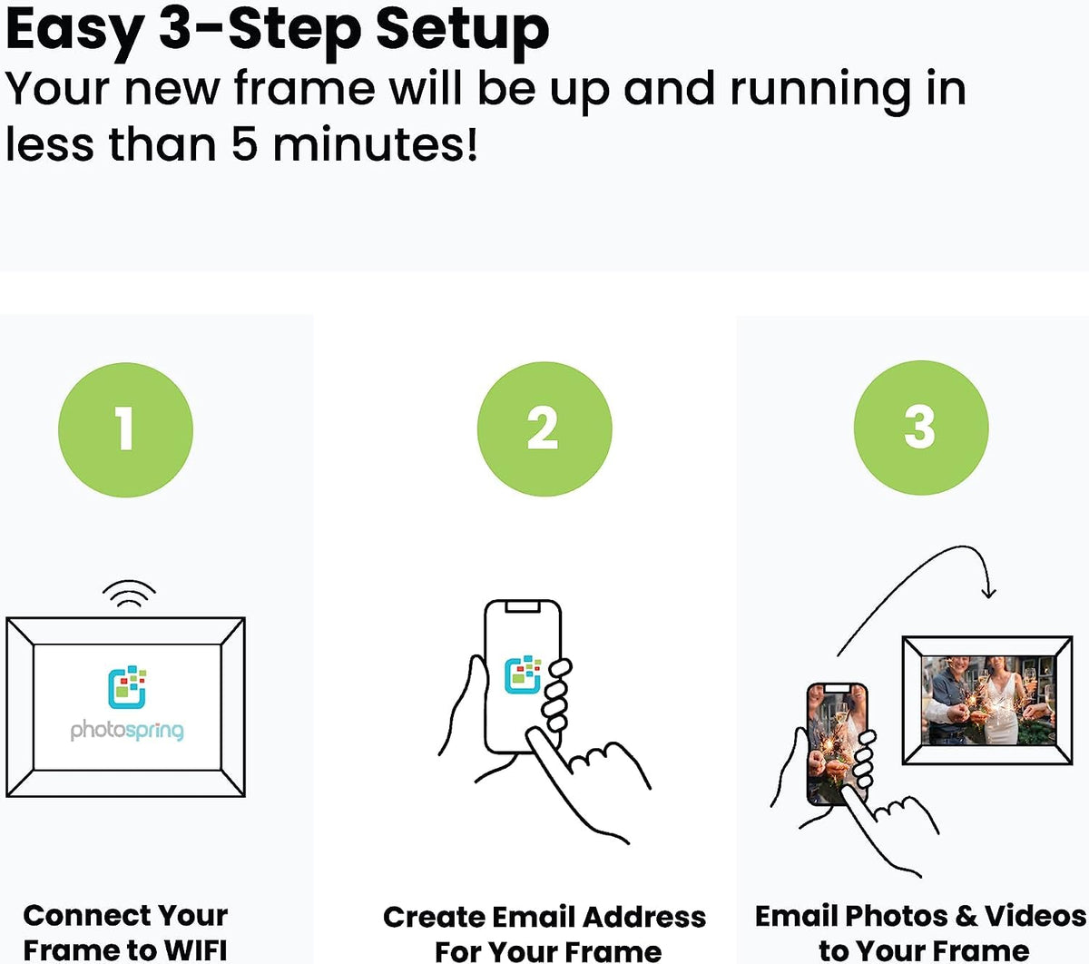 Photospring 10In Wifi Digital Picture Frame, Email Family Photos To The Frame, Or By App, Web. Easy Touchscreen Setup, 1280X800