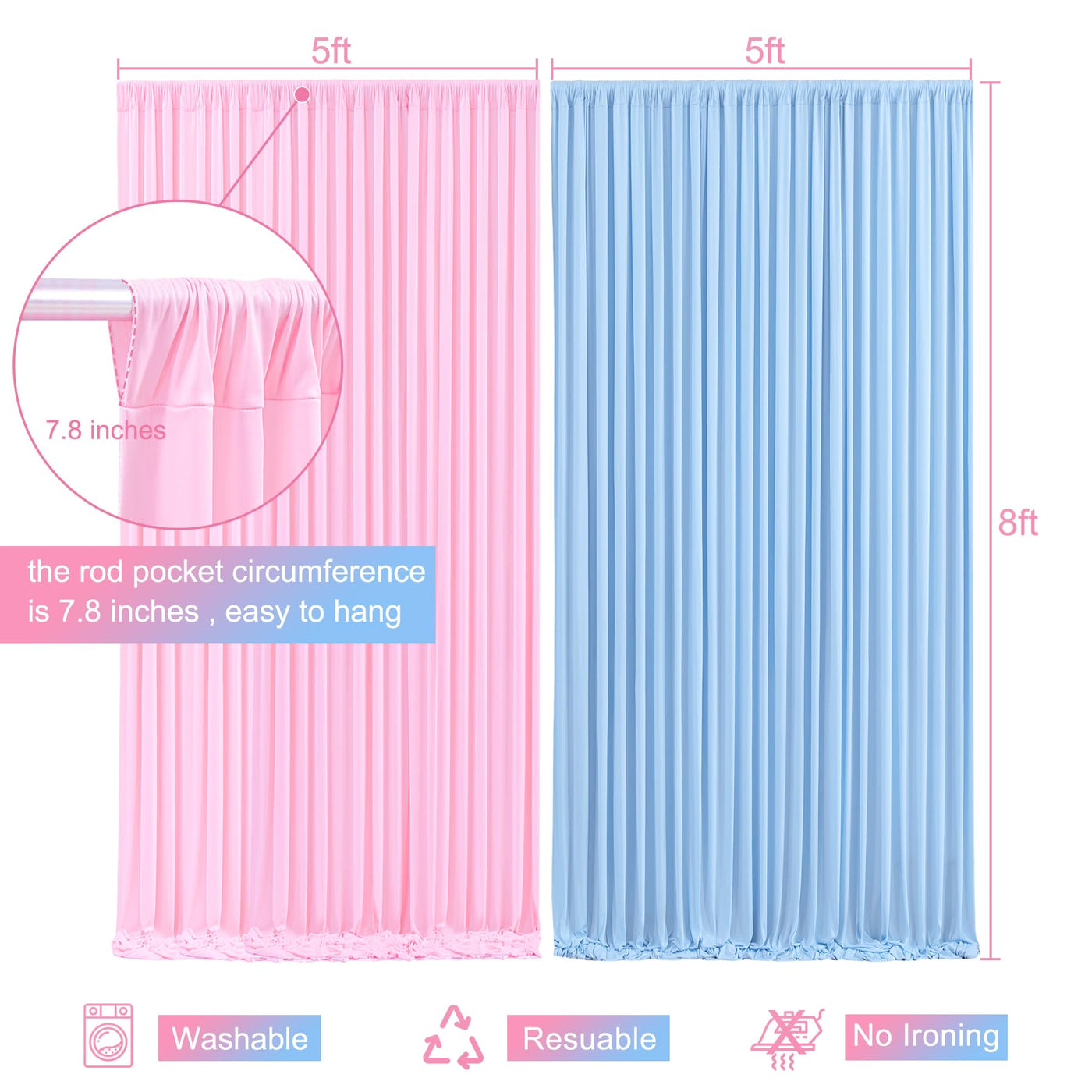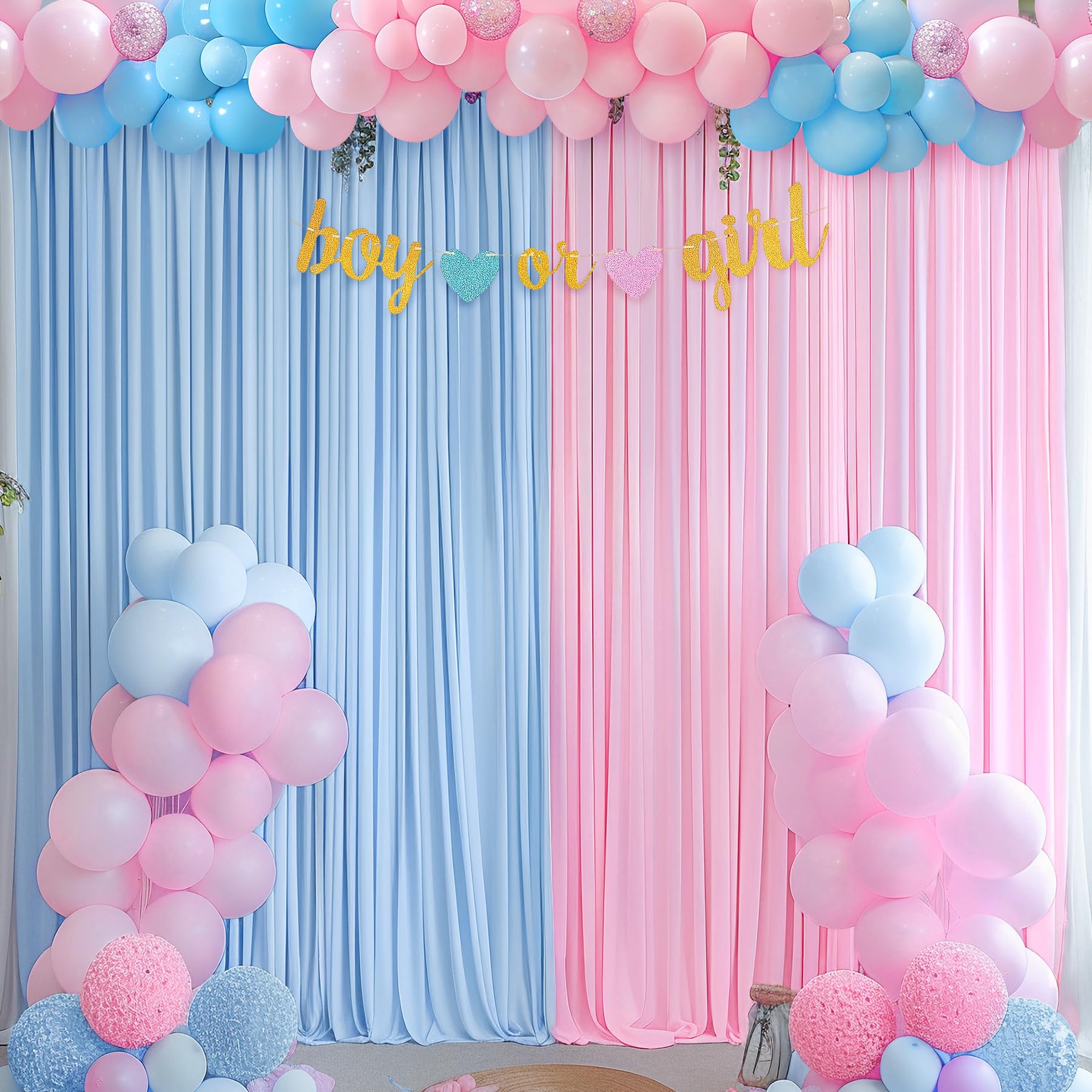 Pink Blue Backdrop Curtains For Gender Reveal Boy Or Girl Parties Wrinkle Free Photo Curtains Backdrop Drapes Fabric Decoration