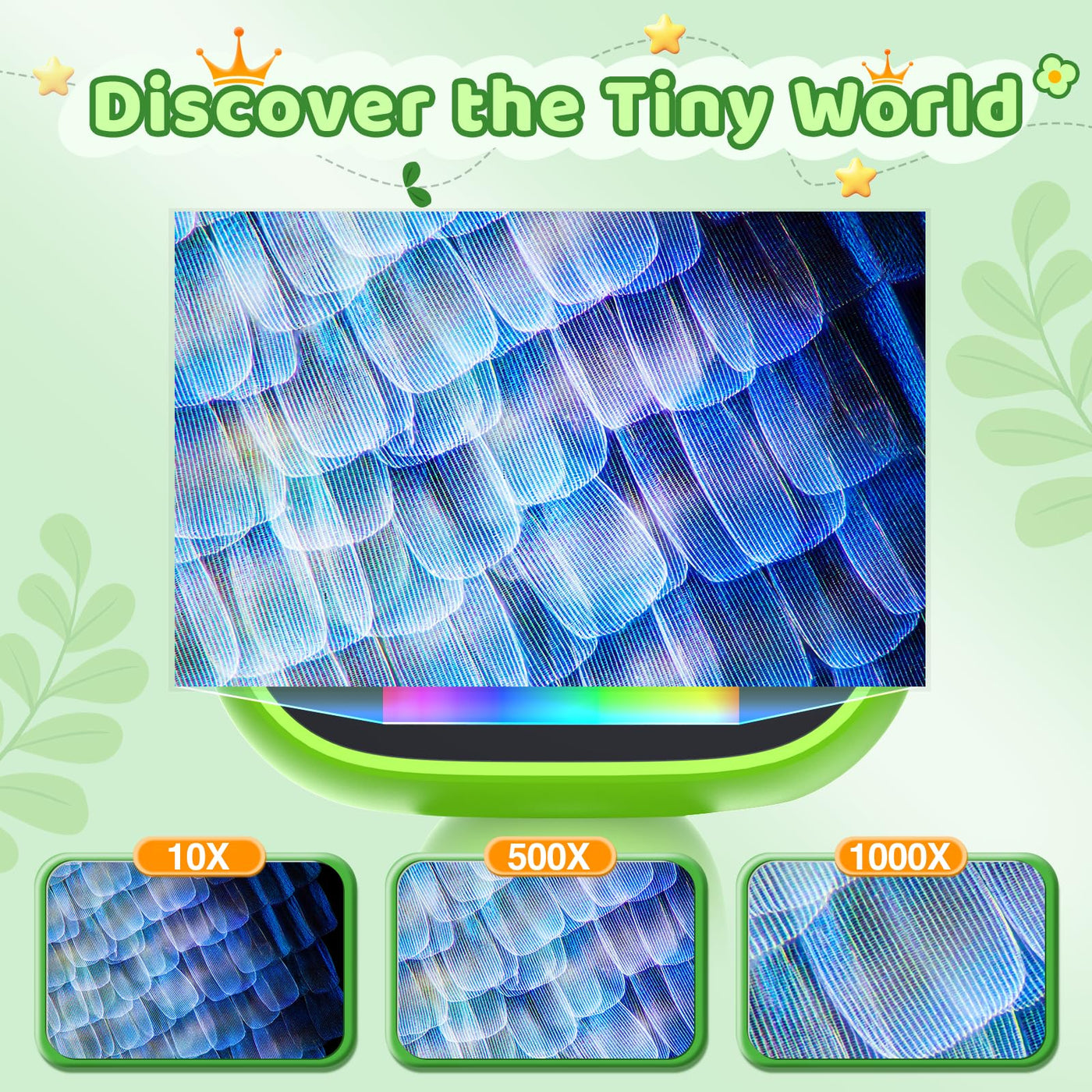 Q: What safety features does the microscope have for children?A: The microscope is designed with safety in mind, featuring a rounded contour and a non-slip grip to ensure secure handling by young users, making it safe for children to explore.