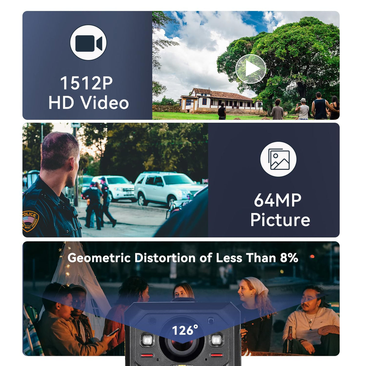 Ponycam 128G Eis Body Worn Camera,3600Mah Battery For 13 Hours Video Record,1512P Hd Body Mounted Cameras With Charging Dock,Waterproof Police Wearable Body Camera For Law Enforcement,Security Guard.