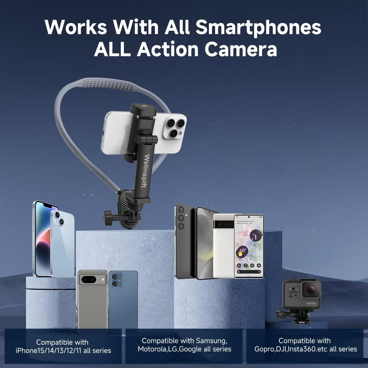 Capture Your Moments Effortlessly With The Upgraded Neck Phone Holder, Designed For Ultimate Comfort And Stability. Whether You'Re Recording Vlogs, Tutorials, Or Pov Videos, This Phone Holder Is Packed With Innovative Features To Enhance Your Filming Experience. Equipped With A Shock-Absorbing Air Cushion, Comfortable To Wear.