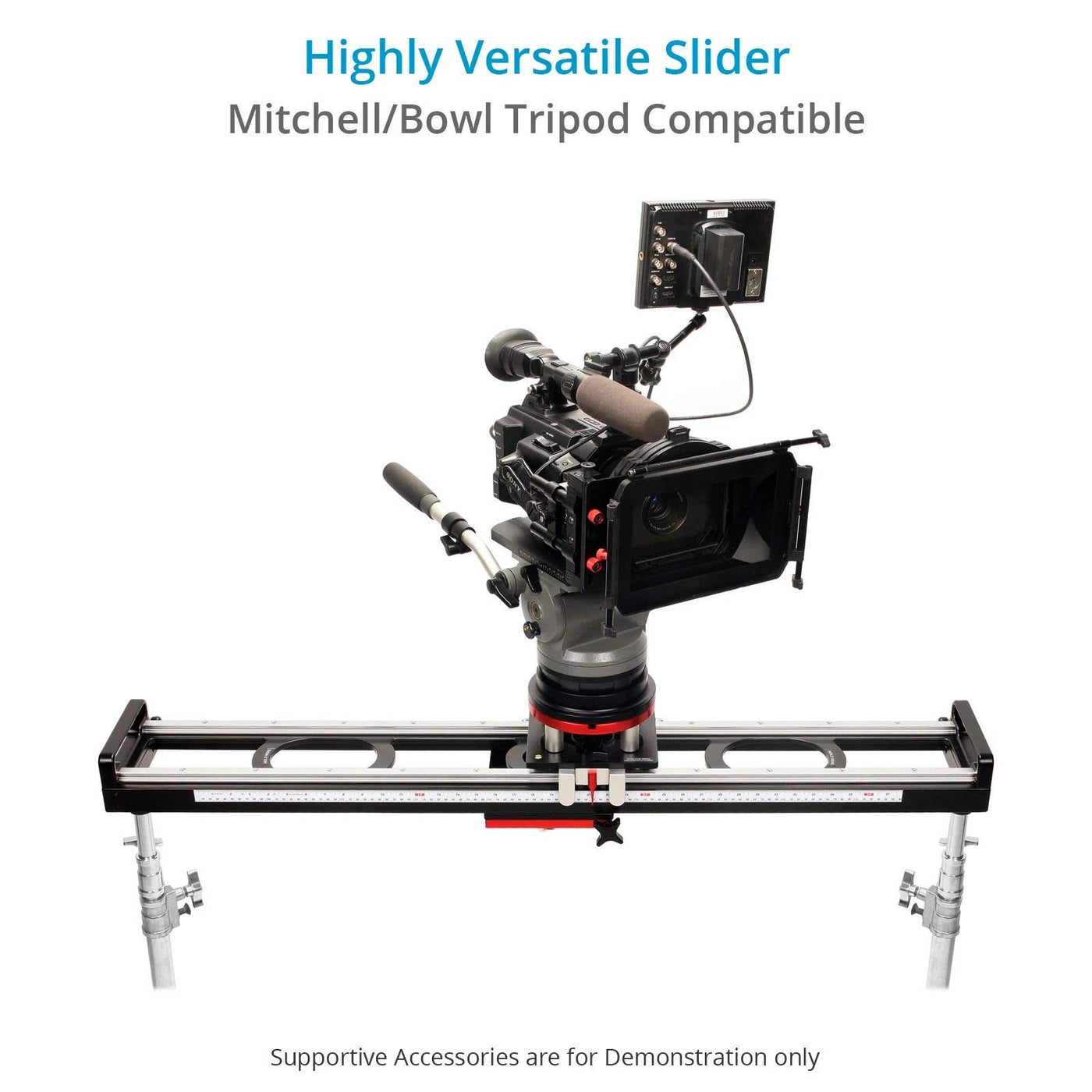 Proaim Flyking Camera Slider Offers The Greatest Flexibility. Its Small Enough To Get Into Tight Spaces, Yet Long Enough That It Wont Limit Your Range Of Motion. The Dynamic Camera Movements Create More Visual Depth, Deeper Emotional Feelings & More Visual Variety. It Is Built With Craftsmanship & Attention To Detail For A Long Production Life And Strong Economic Return On Investment. The Well-Engineered Camera Platform Slides On Metalon Covered 8 Precision Ball Bearings For Soundless Operation. The Minimal Design For Low Profile Dramatic Shots Makes It Lightweight, Hence Portable. The Sturdy Feet Can Be Adjusted In Height As Well As On Any Uneven Surface To Give You The Perfect Footage. The Quality Crafted Robust Construction Takes A Massive 70Kg/154Lb With Ease And Handles Any Camera -F-55/5, One/Epic, C300 Cameras. Extremely Smooth & Precise Shots In One Go - Solves The Daily Challenges Of Camera Operators And Helps Them Earn Reputation. Flyking Slider Is Versatile, Quick To Set-Up, Well-Built, Virtually Maintenance Free And Totally Field Ready. Perfectly Silent Wonderful Slides, Which Make The Sound Man Happy. One Slider For All Cameras, No Matter How Big Or Small The Camera Is - Your Safe, Future-Proof Investment! It Gives Opportunity To Effortlessly Pan 360, Slide Laterally, And Take Push/Pull Moves At Your Will. Whats In The Box - Proaim Flyking Precision Camera Slider (Mitchell Mount) - Crossbar Feet - Flight Case Specifications - Construction: Cnc Aluminum Construction - Load Capacity: 70Kg/154Lb - Camera Mount Type: Mitchell Mount - Travel Distance: 3Ft 3Inch - Tripod Mount Type: Mitchell Base. Also Will Mount On Two Tripods Having 3/8 -16 Screw - 360 Pan Lock: Yes - Sliding Lock: Yes - Leveller: Yes - Ball Bearing: Steel, Metalon Bush - Camera Mount: 17.5Cm Dia - Track Rail Center Distance: 12Cm